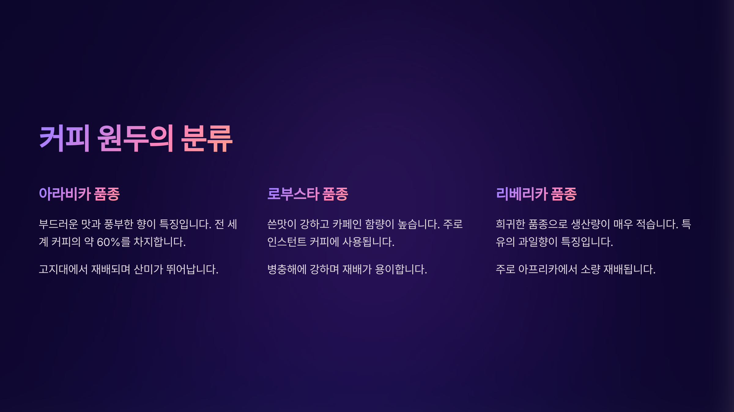 그럼 지금부터 본격적으로 커피 원두의 모든 것을 파헤쳐볼까요? ☕️ 향긋한 커피의 세계로 함께 떠나보자고요!