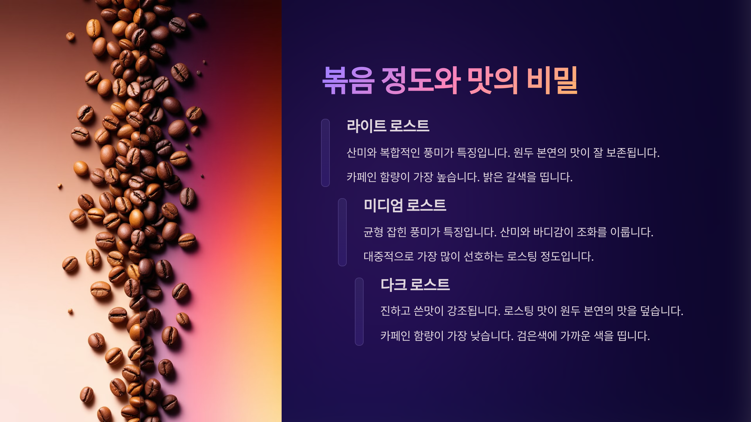 로스팅은 단순히 원두를 볶는 과정이 아니라 맛을 창조하는 예술이에요! 🎨