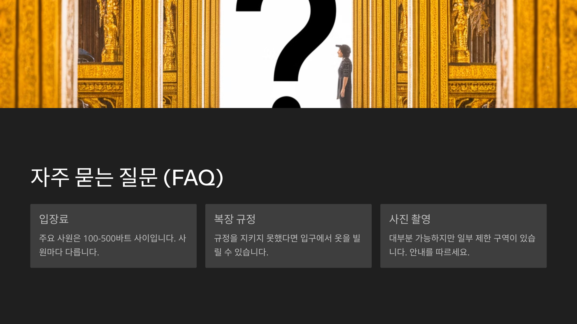 📌 이제 태국 사원에 대한 자주 묻는 질문(FAQ)을 확인해볼까요?