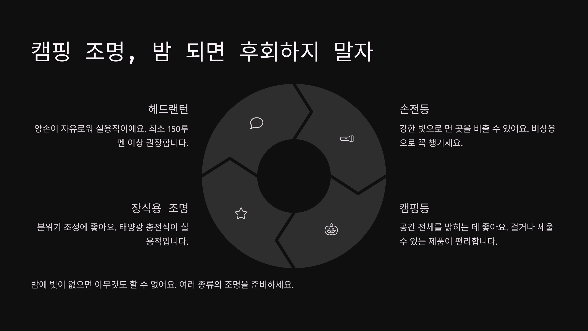 캠핑 조명, 밤 되면 후회하지 말자 💡