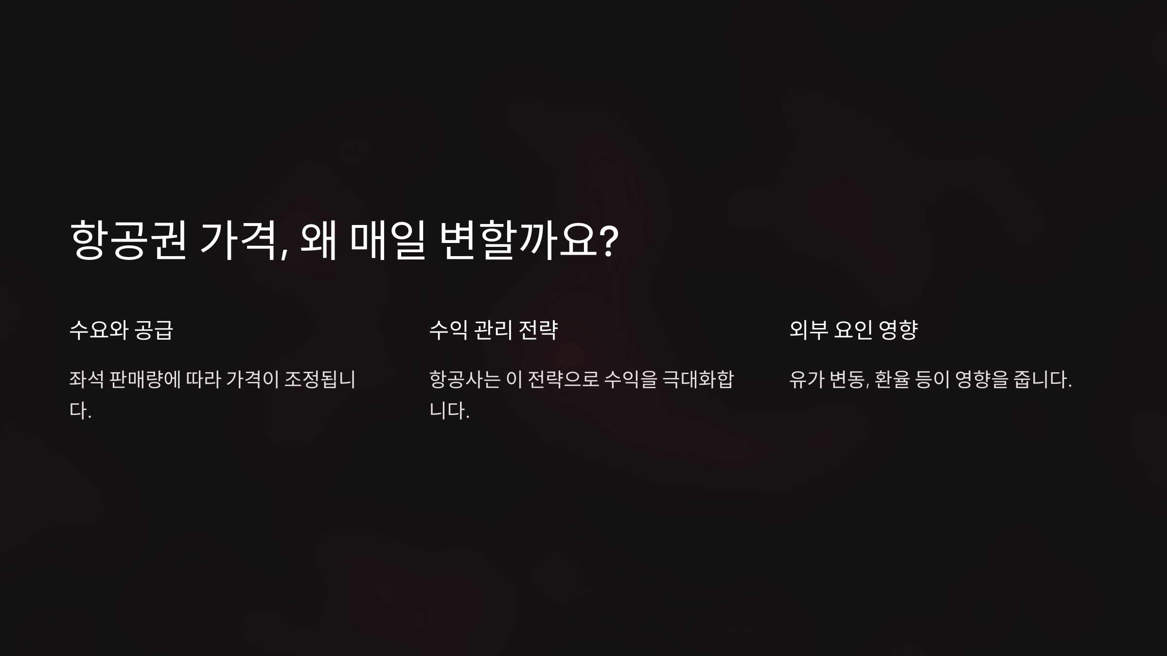 A3. 항공사들은 AI 알고리즘을 이용해 실시간으로 가격을 조정해요. 수요가 많아지면 가격이 오르고, 반대로 좌석이 남으면 할인을 적용하기도 해요.