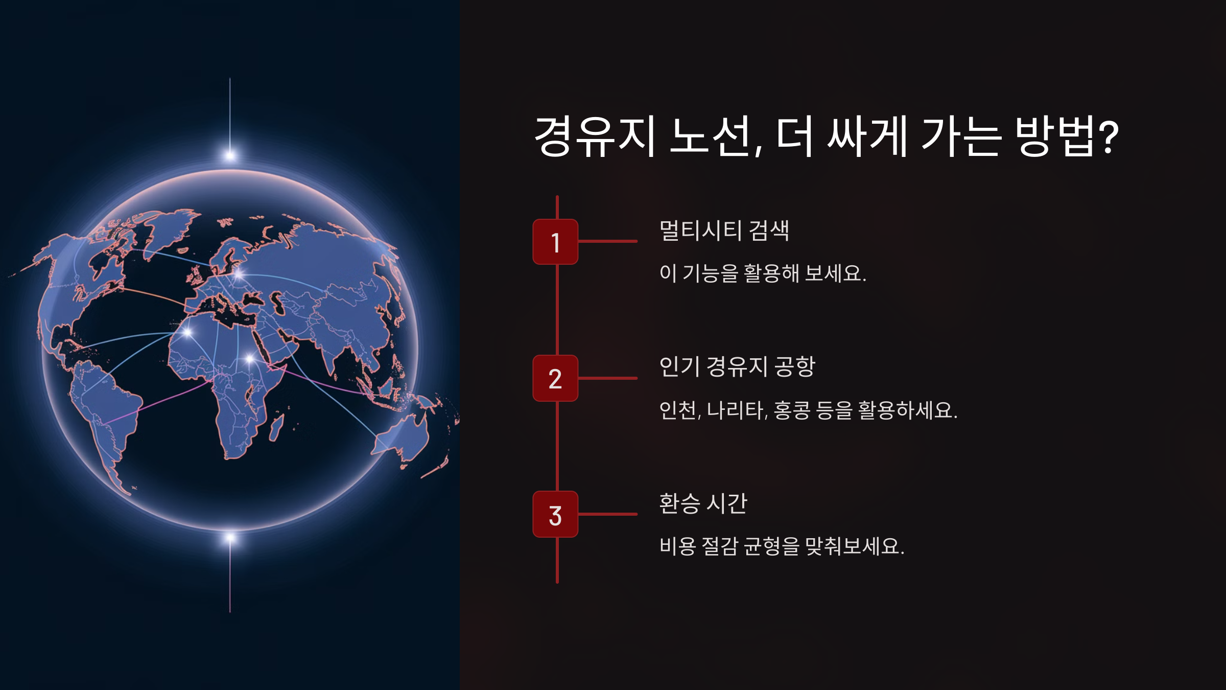 항공권을 검색할 때 직항만 고집하다 보면 비싼 가격을 감수해야 하는 경우가 많아요. 하지만 경유지를 활용하면 같은 목적지라도 훨씬 저렴한 가격에 항공권을 구매할 수 있어요! 💰✈️