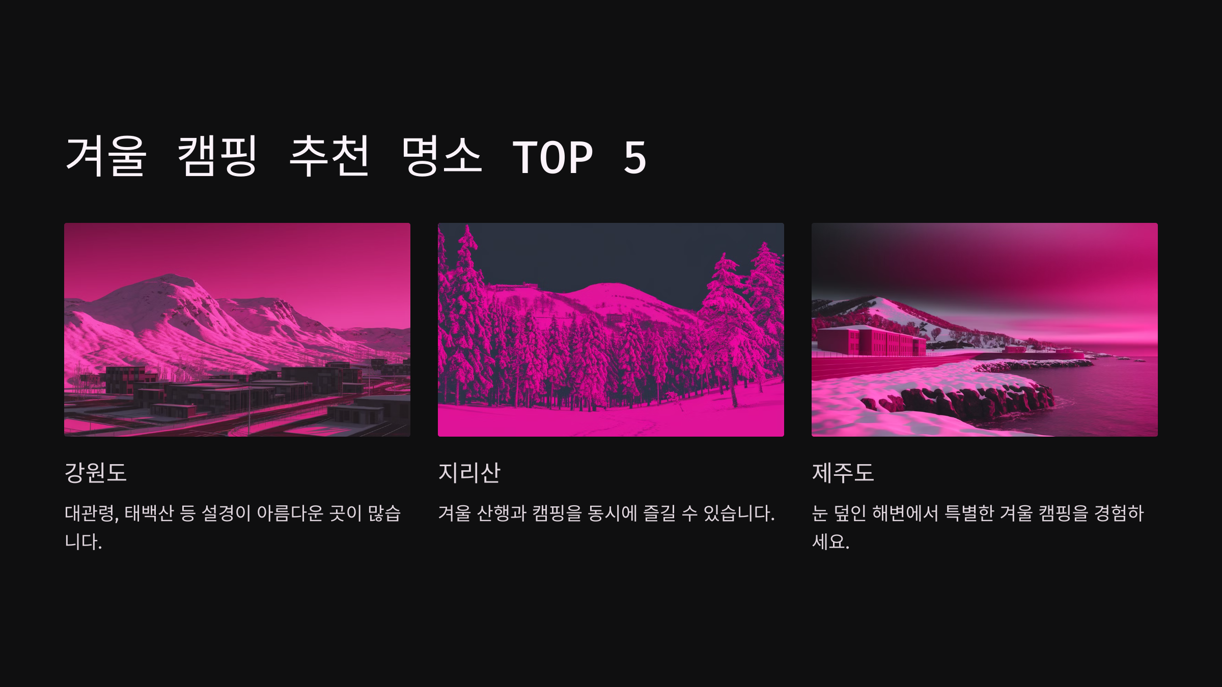 아래는 겨울 캠핑을 즐기기에 최적의 명소 5곳을 추천할게요! 🏔️