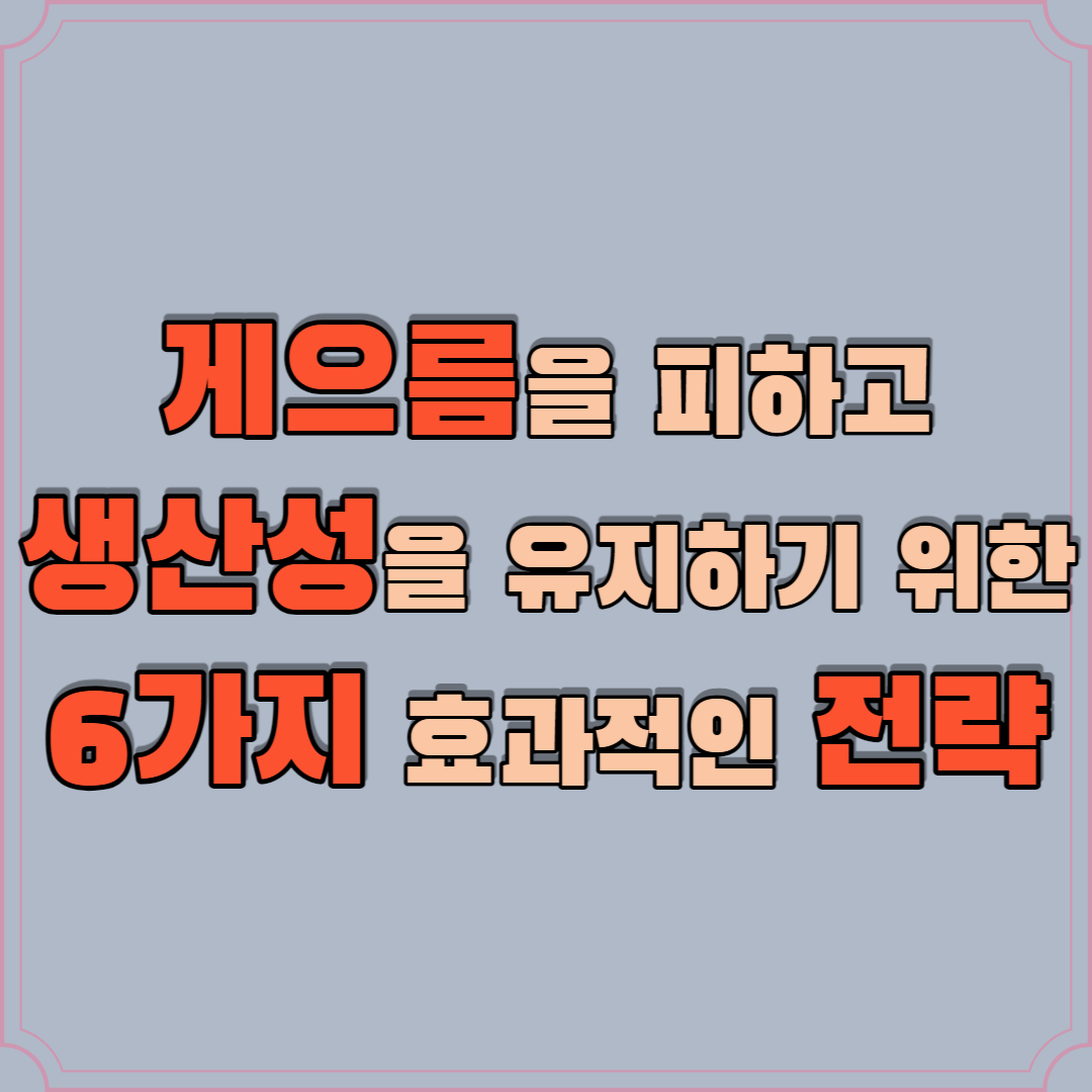 매일 동기 부여와 생산성을 유지하는 방법을 찾고 계십니까? 일일 목표 설정, 습관 추적, 긍정적인 자기 대화 등 게으름을 피하는 6가지 효과적인 전략에 대해 알아보고 이 팁을 통해 집중력을 유지하고 목표를 달성할 수 있습니다.