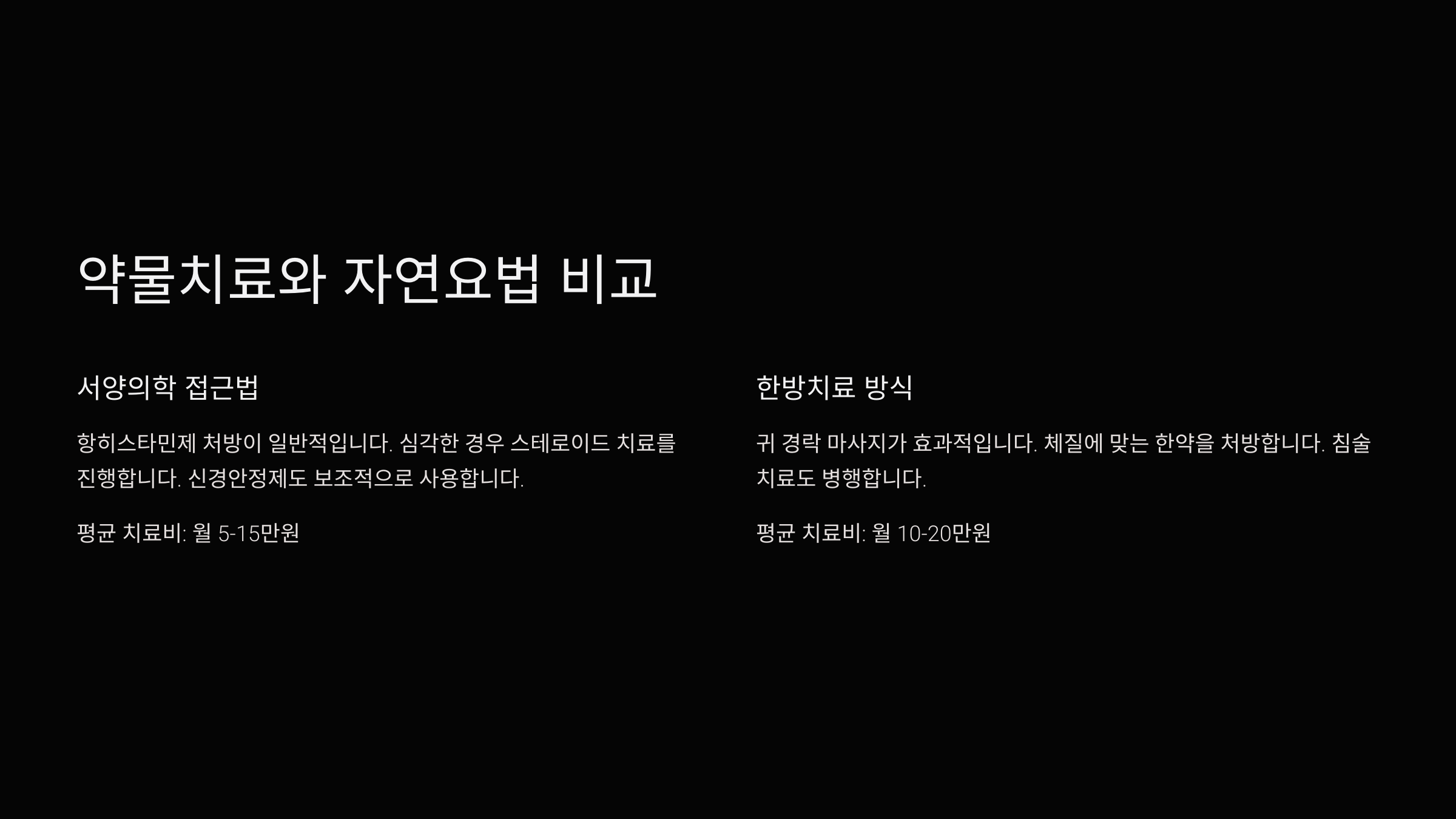 장점 즉각적인 증상 완화 가능 부작용 적고 장기적 안정 유도