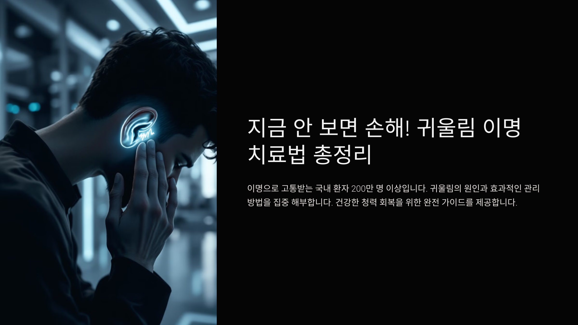귀 안에서 ‘삐-’, ‘윙-’ 하는 소리를 듣는 경험, 혹시 해본 적 있으신가요? 이것이 바로 이명, 즉 귀울림 증상이에요. 누구에게나 한 번쯤은 생길 수 있지만, 반복되고 지속된다면 일상생활에 큰 스트레스를 줄 수 있어요.
