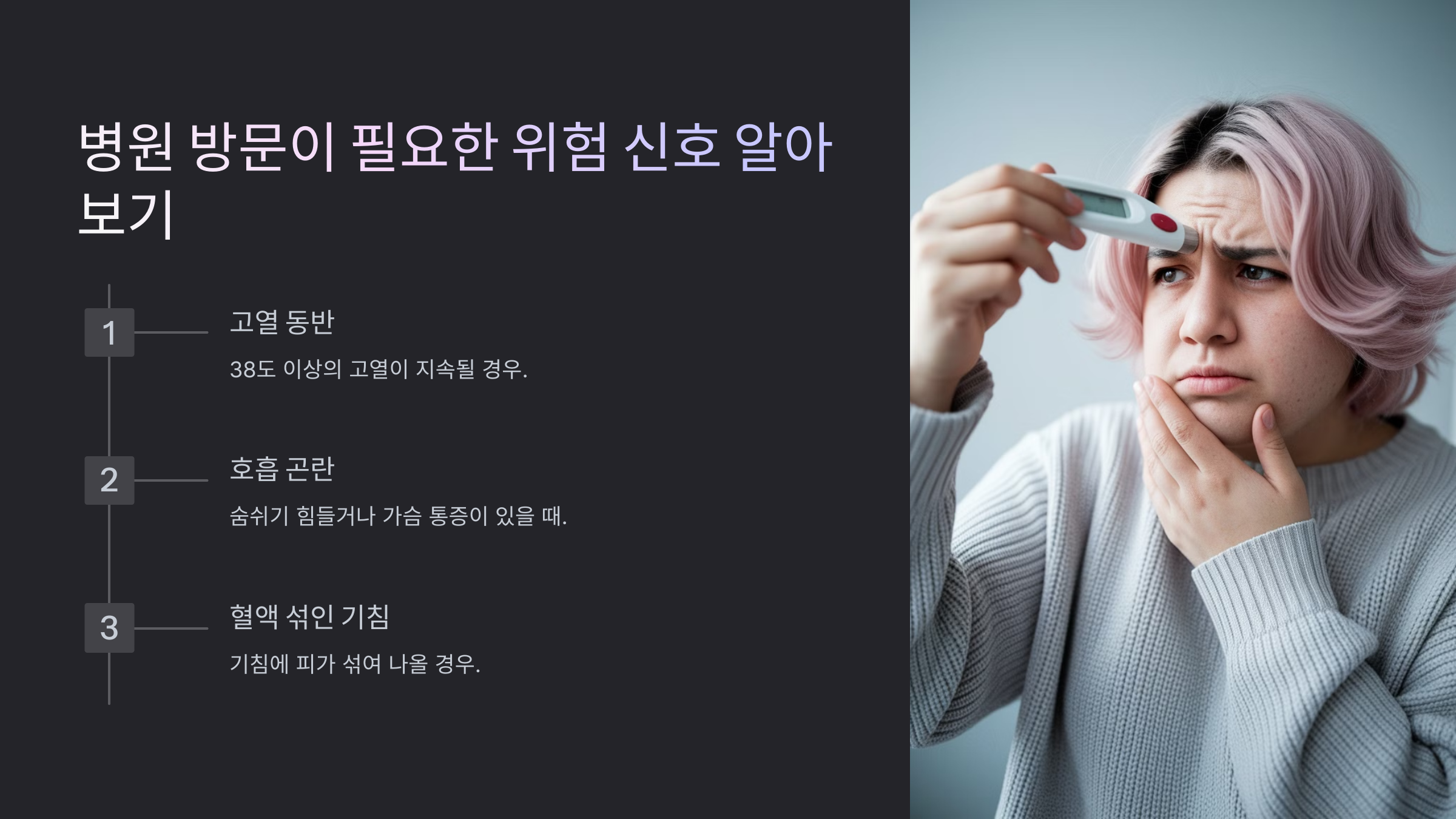 병원에 가야 할 기침 기침이 3주 이상 지속, 피 섞인 가래, 호흡곤란 즉시 병원 방문, 전문 진단 필요