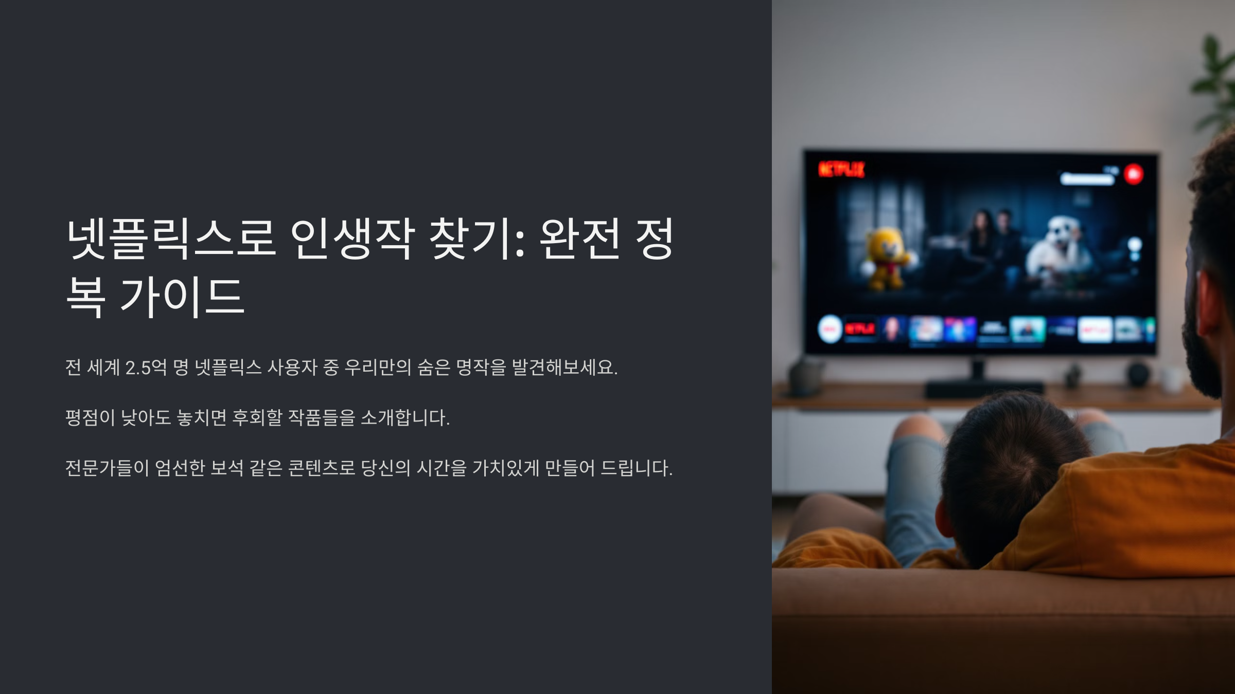 넷플릭스에는 엄청나게 많은 콘텐츠가 있지만, 우리가 진짜 찾고 싶은 건 ‘인생작’이잖아요. 그런데 평점만 보고 고르다 보면 놓치는 보석 같은 작품들이 참 많아요.