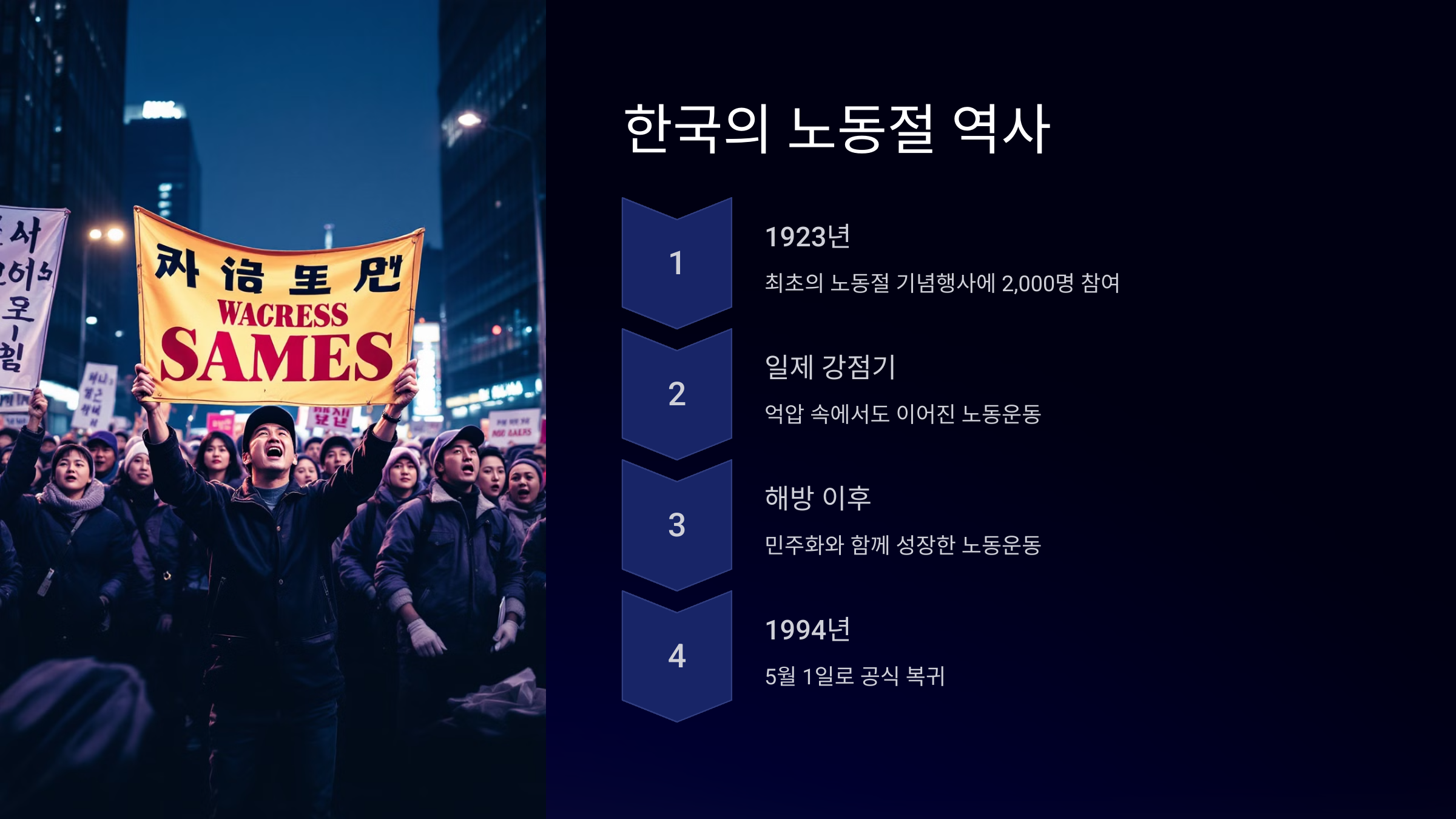 한때는 탄압과 통제로 인해 노동절을 기념하는 것이 어려웠지만, 오늘날에는 민주화된 분위기 속에서 자유롭게 노동절을 기념할 수 있게 되었어요. 여전히 이 날을 통해 노동자의 권리와 목소리를 다시 확인하는 일이 중요한 이유이기도 해요.