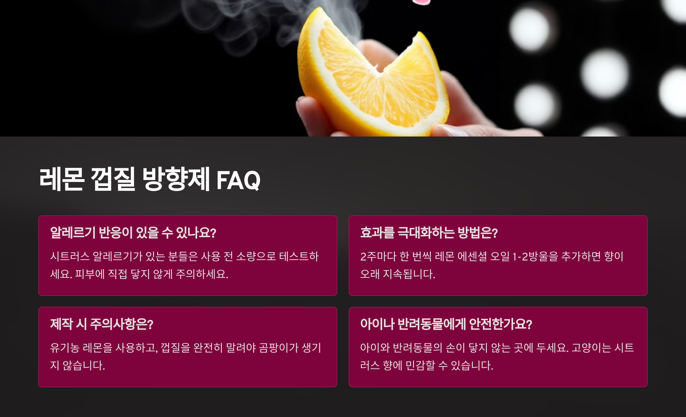 🌼 레몬 껍질 방향제 주요 특징 비교 🌼