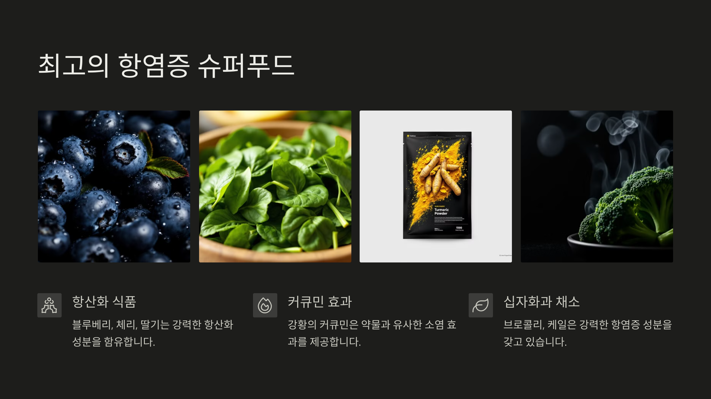 이제 항염증 식품부터 건강 보조제까지, 하나씩 자세히 알아볼게요. 준비되셨다면 아래 내용부터 같이 살펴봐요!