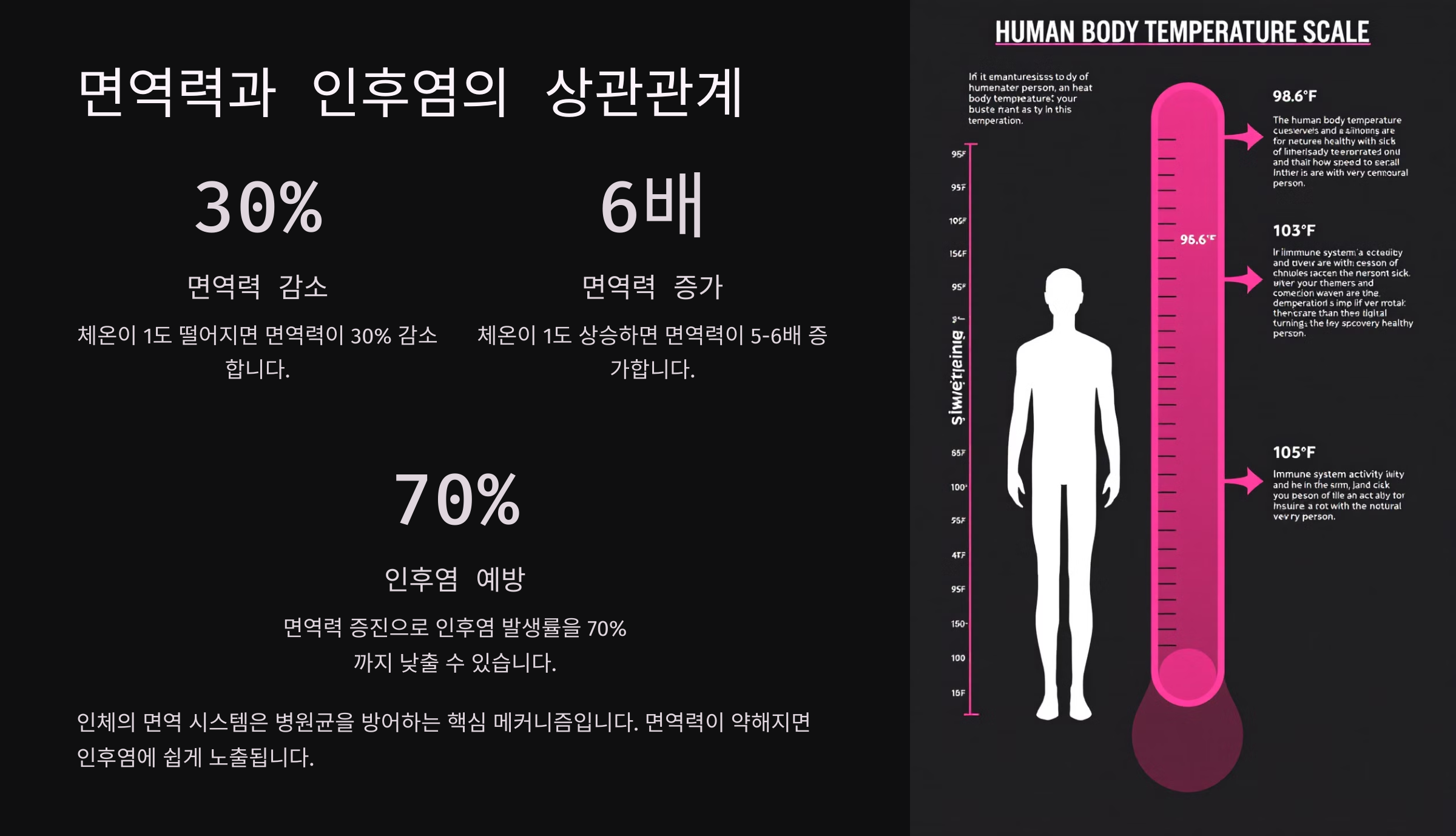 수면 부족이 지속되면 몸은 만성 피로 상태로 전환돼요. 이 상태에서는 외부 병원균이 들어와도 제대로 싸울 힘이 없어요. 실험적으로도 4시간 수면을 일주일간 유지한 사람들은 감기에 걸릴 확률이 3배 이상 높았다고 해요. 특히 인후염은 첫 증상으로 나타날 확률이 높아서 경고등 역할을 하기도 해요.
