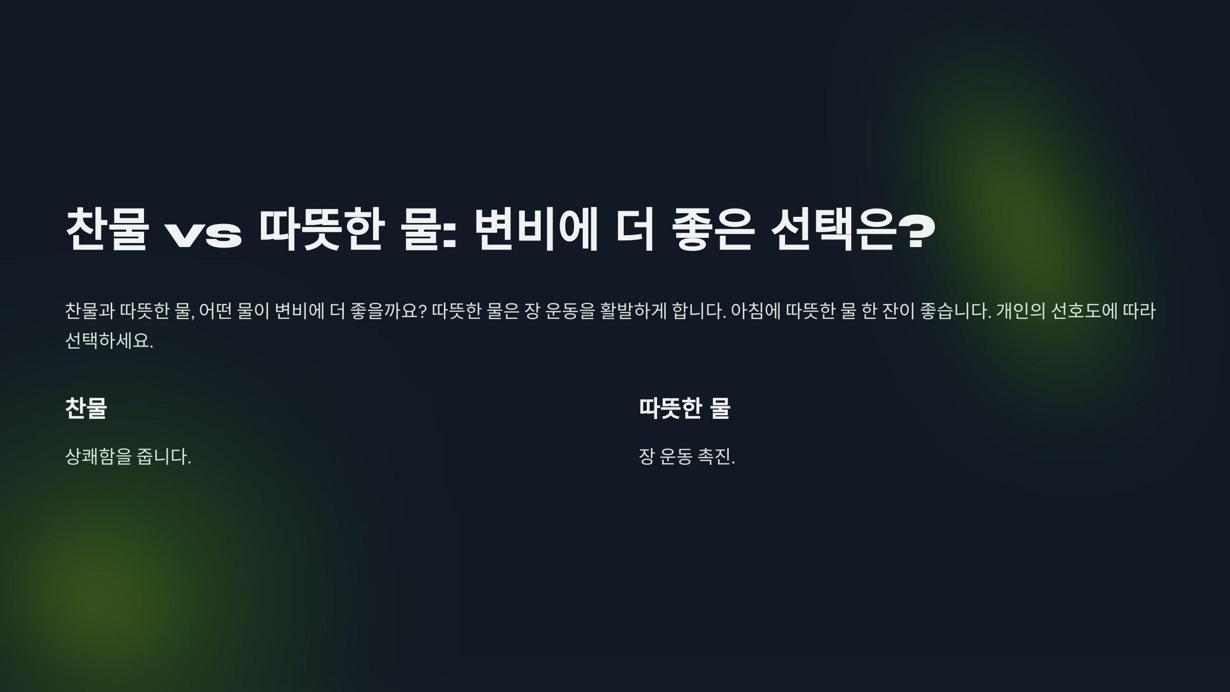 찬물 vs 따뜻한 물, 어떤 게 변비에 좋을까? ❄️🔥