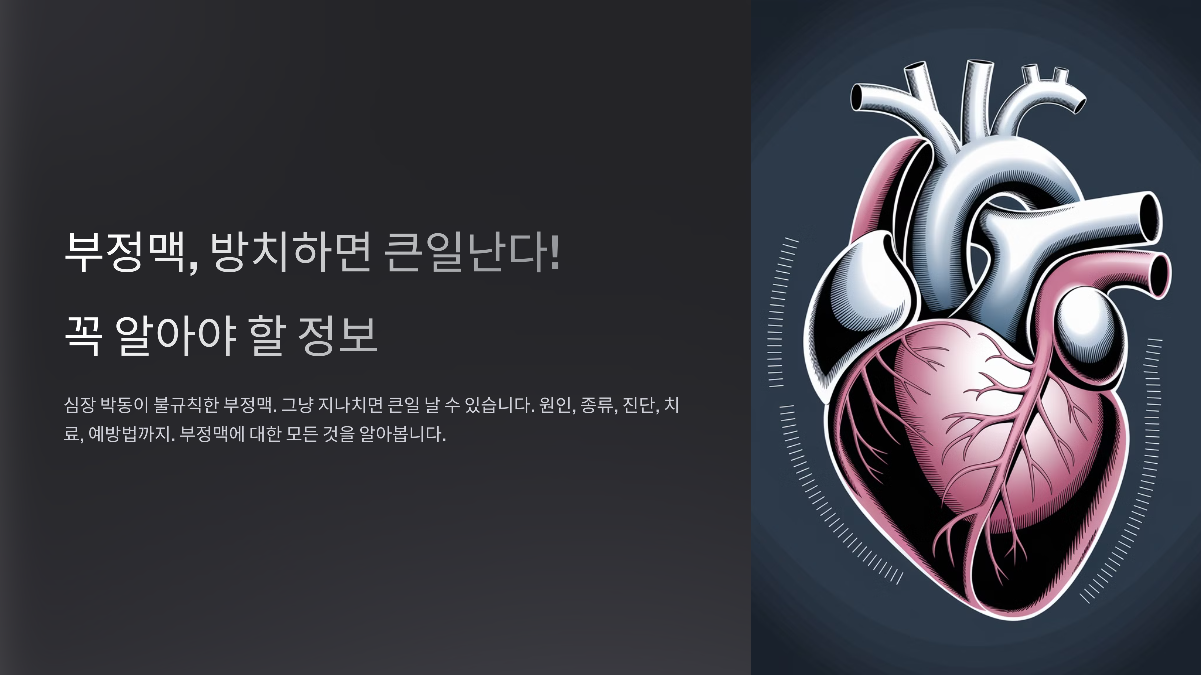 📌 특히 평소 가슴 두근거림, 어지러움, 숨 가쁨 등의 증상이 있다면 부정맥을 의심해봐야 해요. 지금부터 부정맥에 대해 꼭 알아야 할 정보를 정리해볼게요!