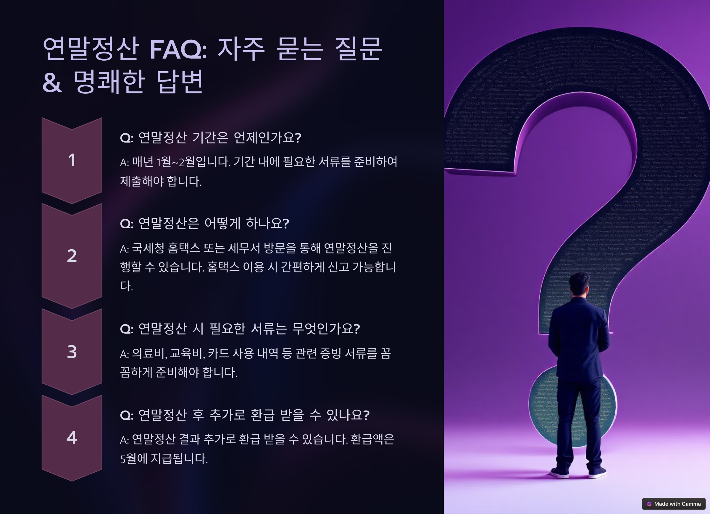 마지막으로, 연말정산 관련 자주 묻는 질문(FAQ)을 살펴볼게요. 🔽