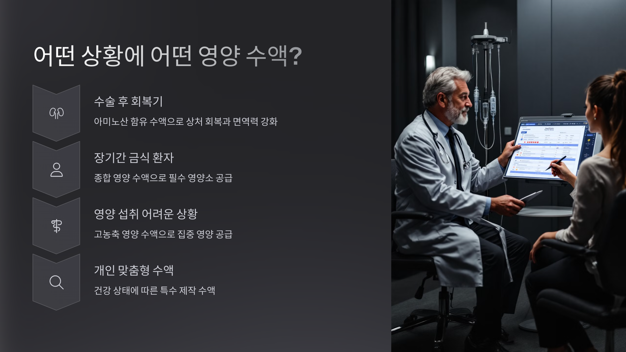 영양 수액은 단순한 건강 보조 수단을 넘어, 특정 상황에서 큰 도움이 될 수 있어요. 예를 들어 입원 중이거나 식사를 잘 못 하는 분들에겐 수액이 중요한 영양 공급원이 될 수 있죠. 특히 수술 직후나 항암 치료 중에는 회복을 도와주는 수액이 필수로 사용되기도 해요.