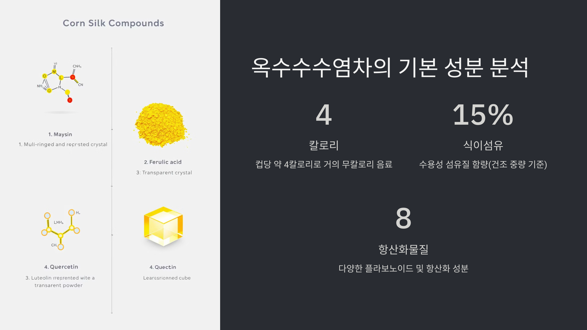옥수수수염차의 칼로리와 성분