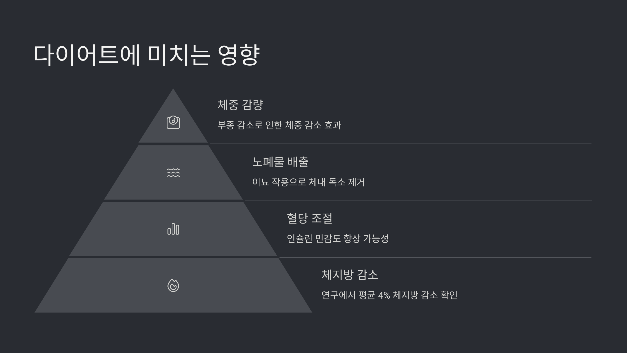 | 아침 공복 | 식전 한 컵 섭취 | 위 포만감 증가, 식사량 조절 |