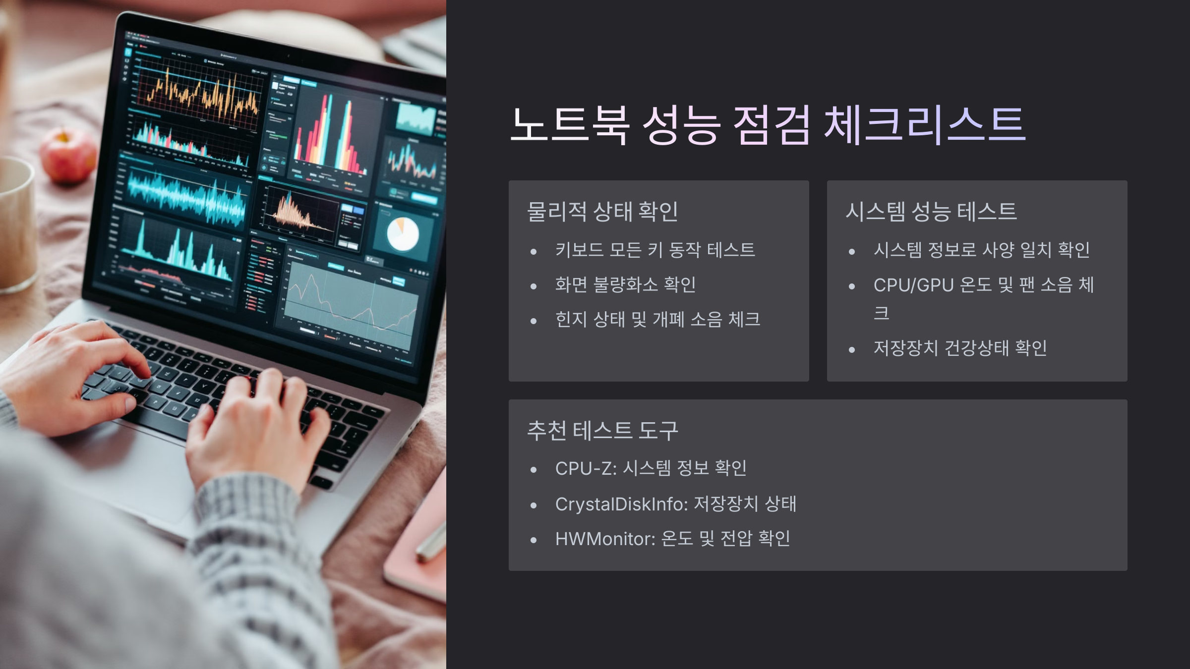 지금부터 알려드릴 내용만 잘 기억해두면, 중고 노트북도 새것처럼 만족스럽게 사용할 수 있을 거예요! 📚