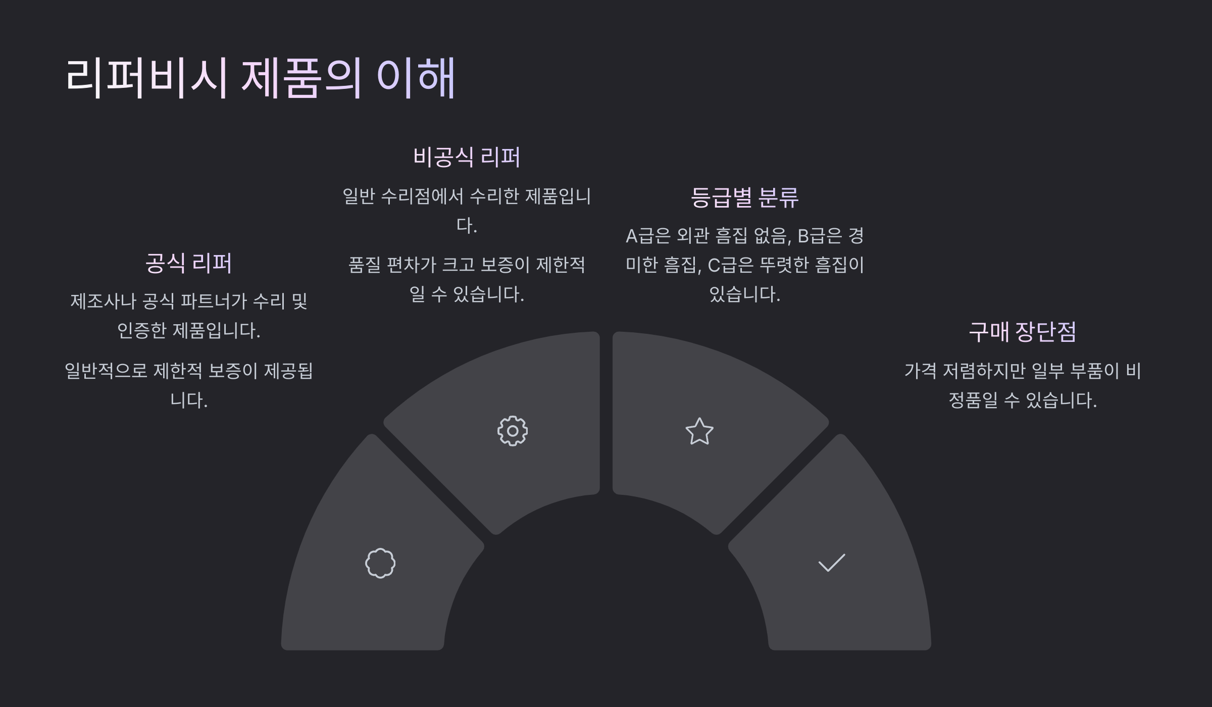 | 공식 리퍼 | 제조사에서 수리 및 테스트 후 재출시 |