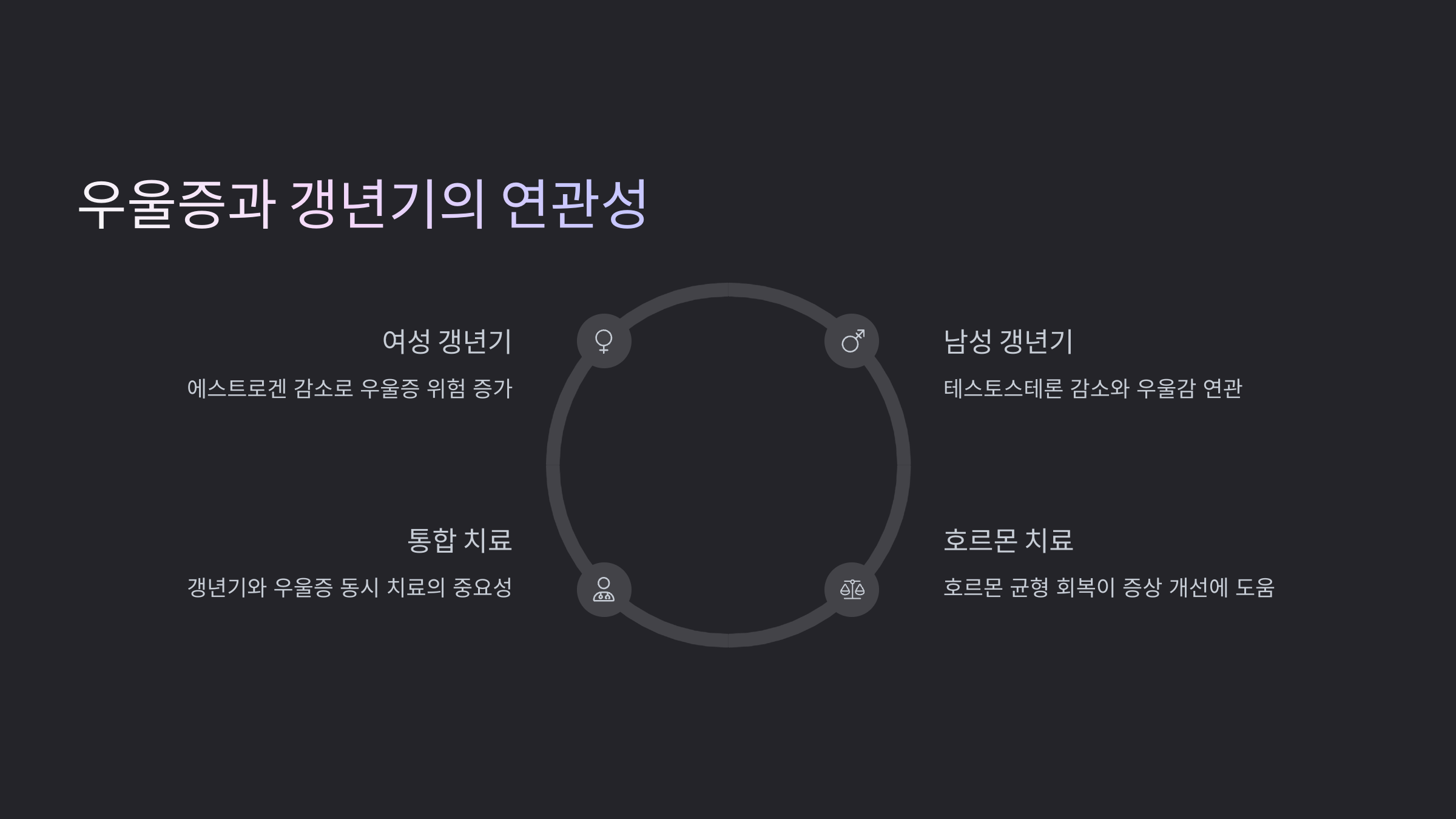 실제로 중년기 우울증 환자 중 많은 분들이 "별일 없었는데도 그냥 슬펐어요"라고 말해요. 이는 외부 원인이 아니라 내부적 신경학적 변화에 의한 우울감일 수도 있답니다.