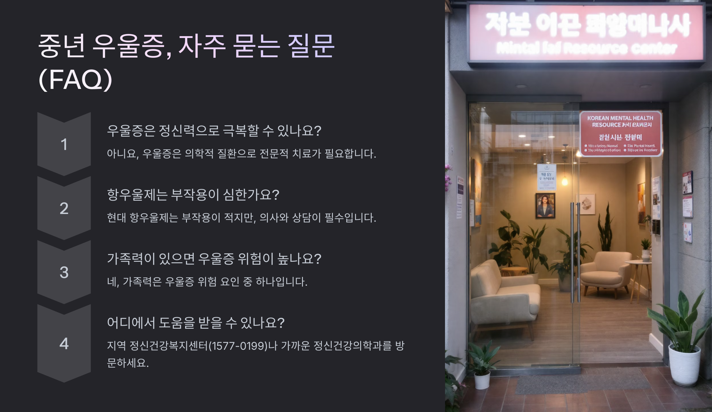 중년 우울증 자주 묻는 질문 (FAQ) ❓