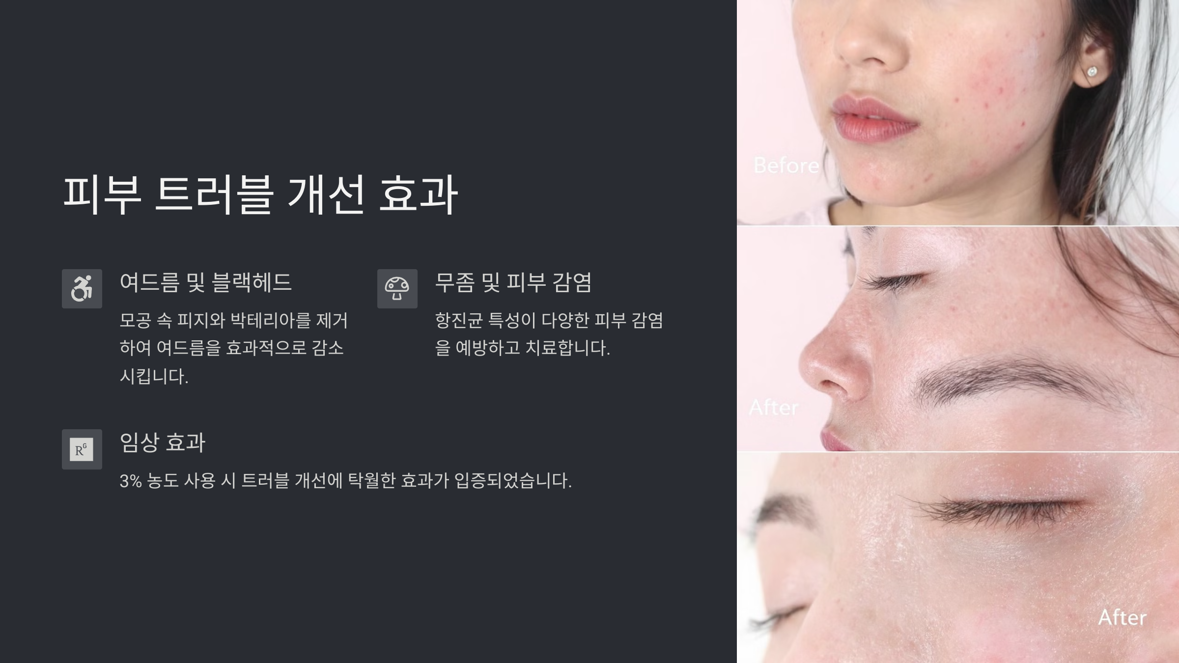 | 스팟 케어 | 1~2% | 여드름, 붉은 트러블 |