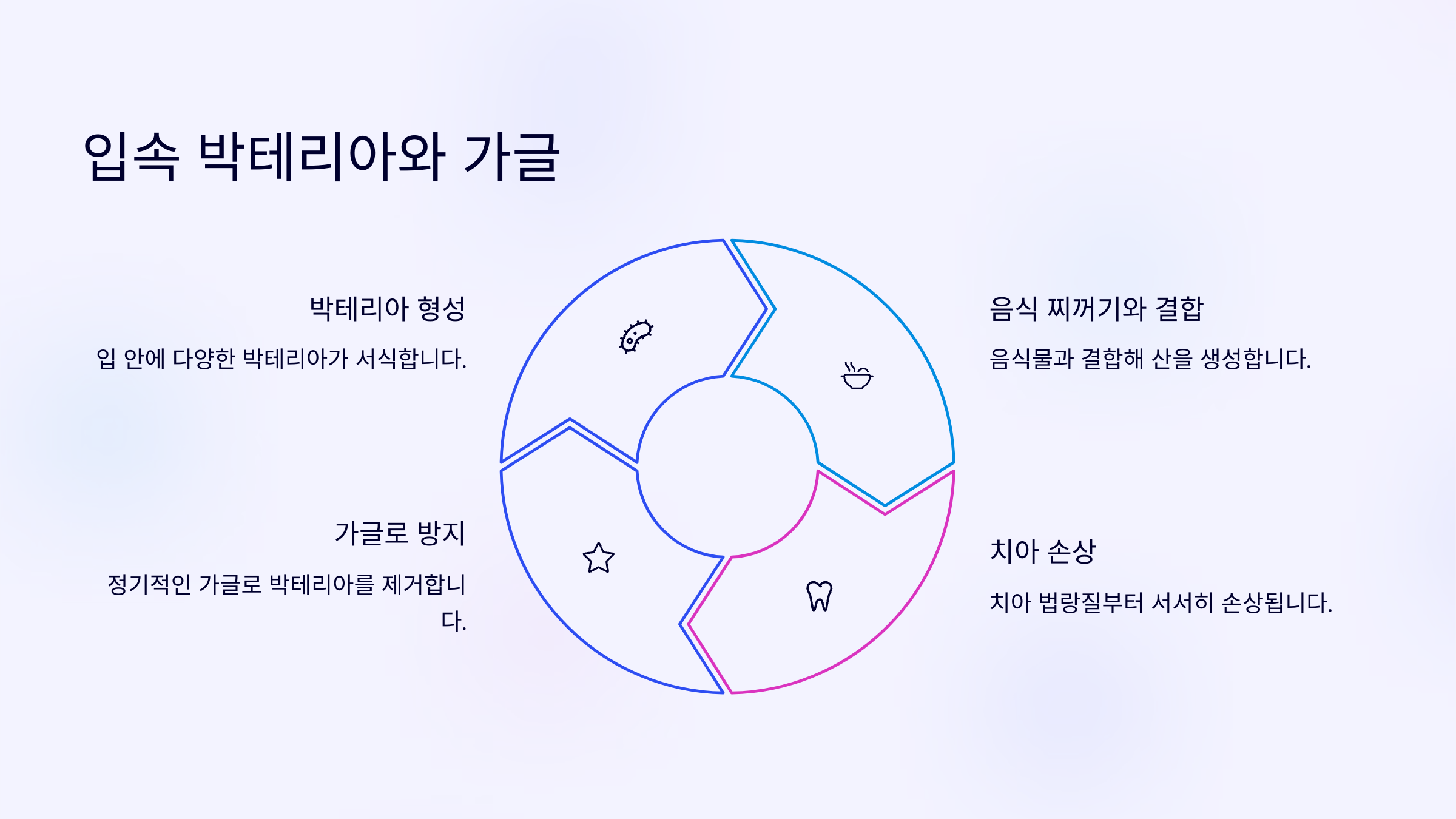 다음에는 입속 박테리아와 가글이 어떤 관계가 있는지, 그리고 어떻게 하면 박테리아를 효과적으로 줄일 수 있는지 알려줄게요! 🧫