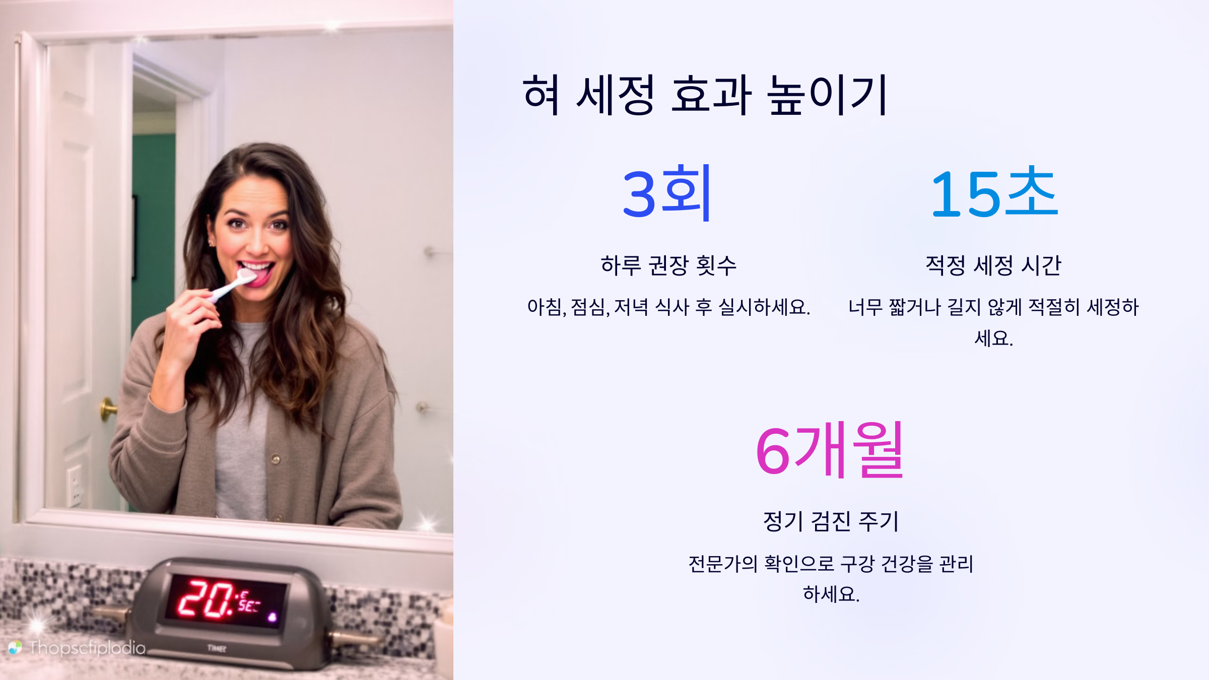 | 기상 직후 | 혀 세정 → 가글 | 야간 세균 제거, 입냄새 완화 |