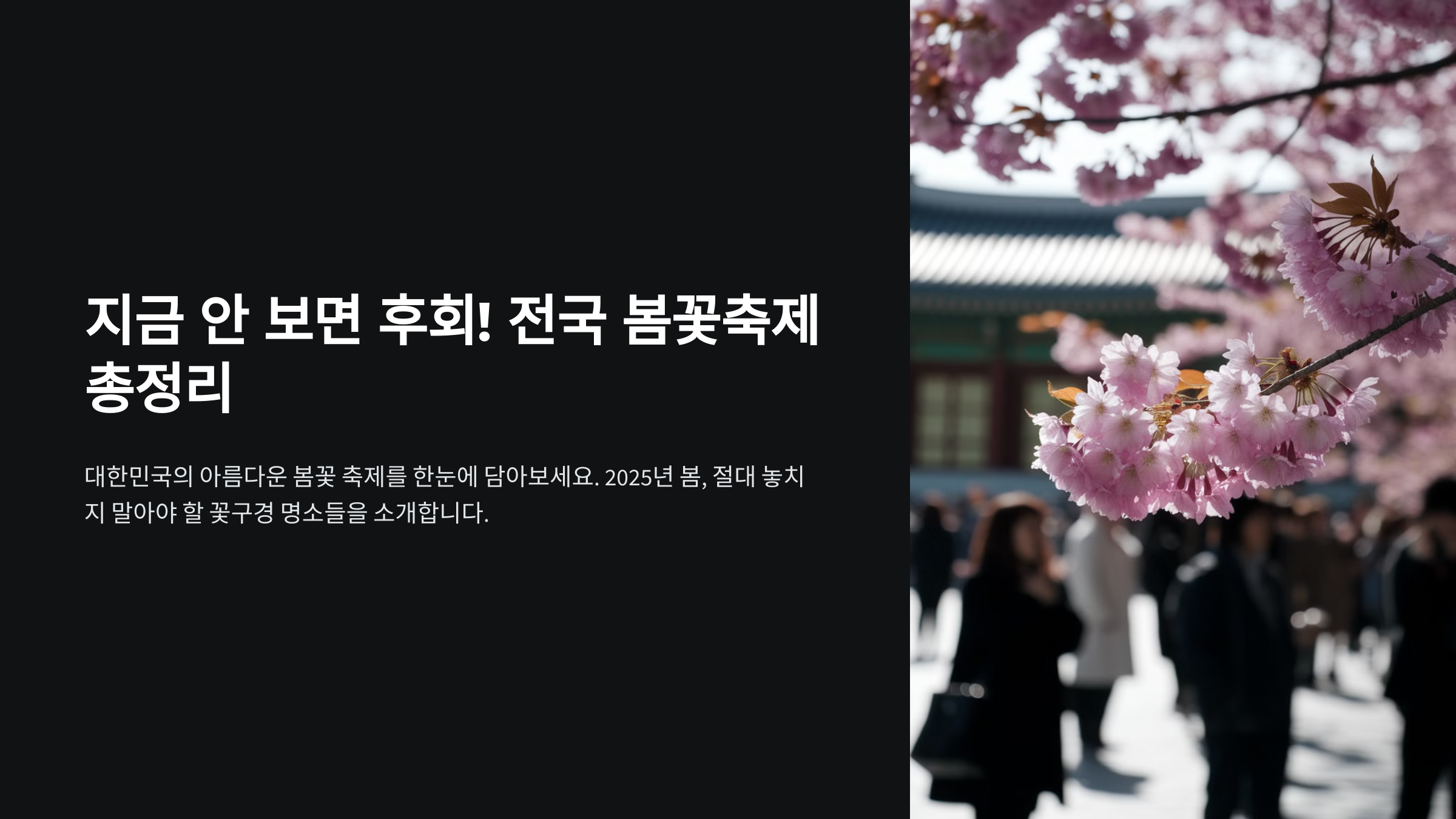 | 서울 여의도 벚꽃축제 | 서울 영등포구 | 2025년 4월 5일~4월 12일 |