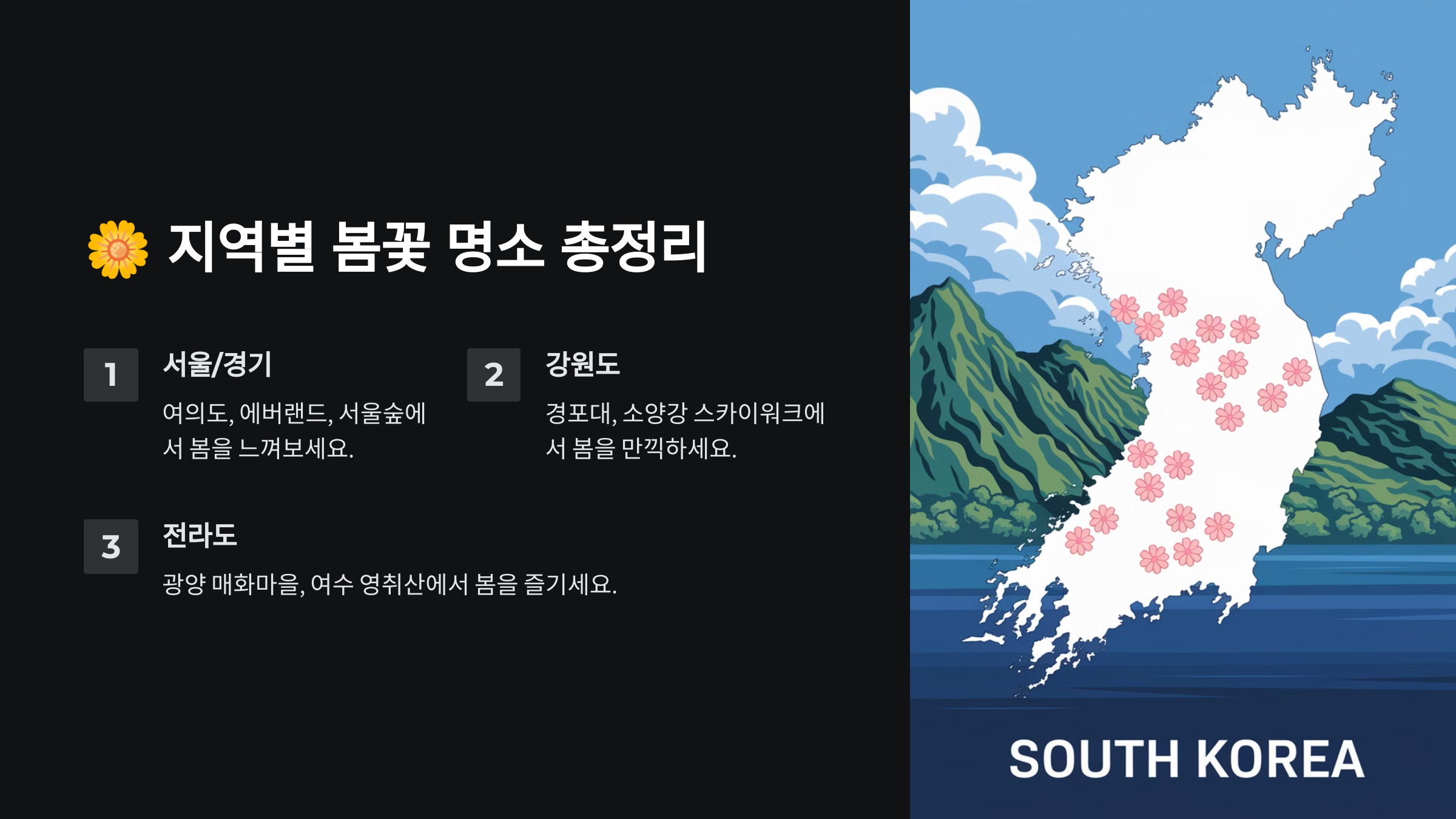 봄꽃 개화 시기부터 축제 일정, 지역별 명소까지 한 번에 확인할 수 있도록 준비했으니, 이번 봄 어디로 떠날지 고민이라면 꼭 끝까지 읽어보세요! 🎉