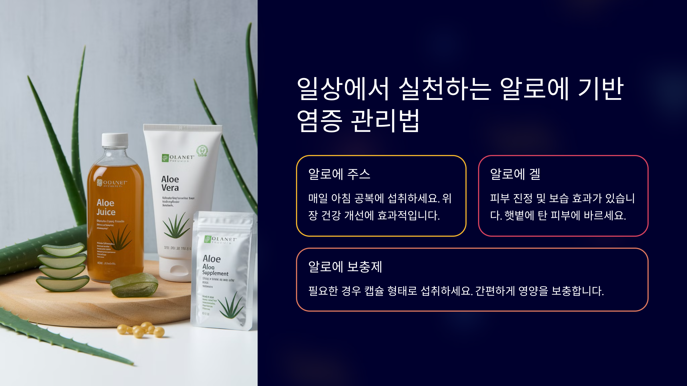 이제 **내부 염증 완화를 위한 알로에 섭취법**을 알아볼까요? 🥤