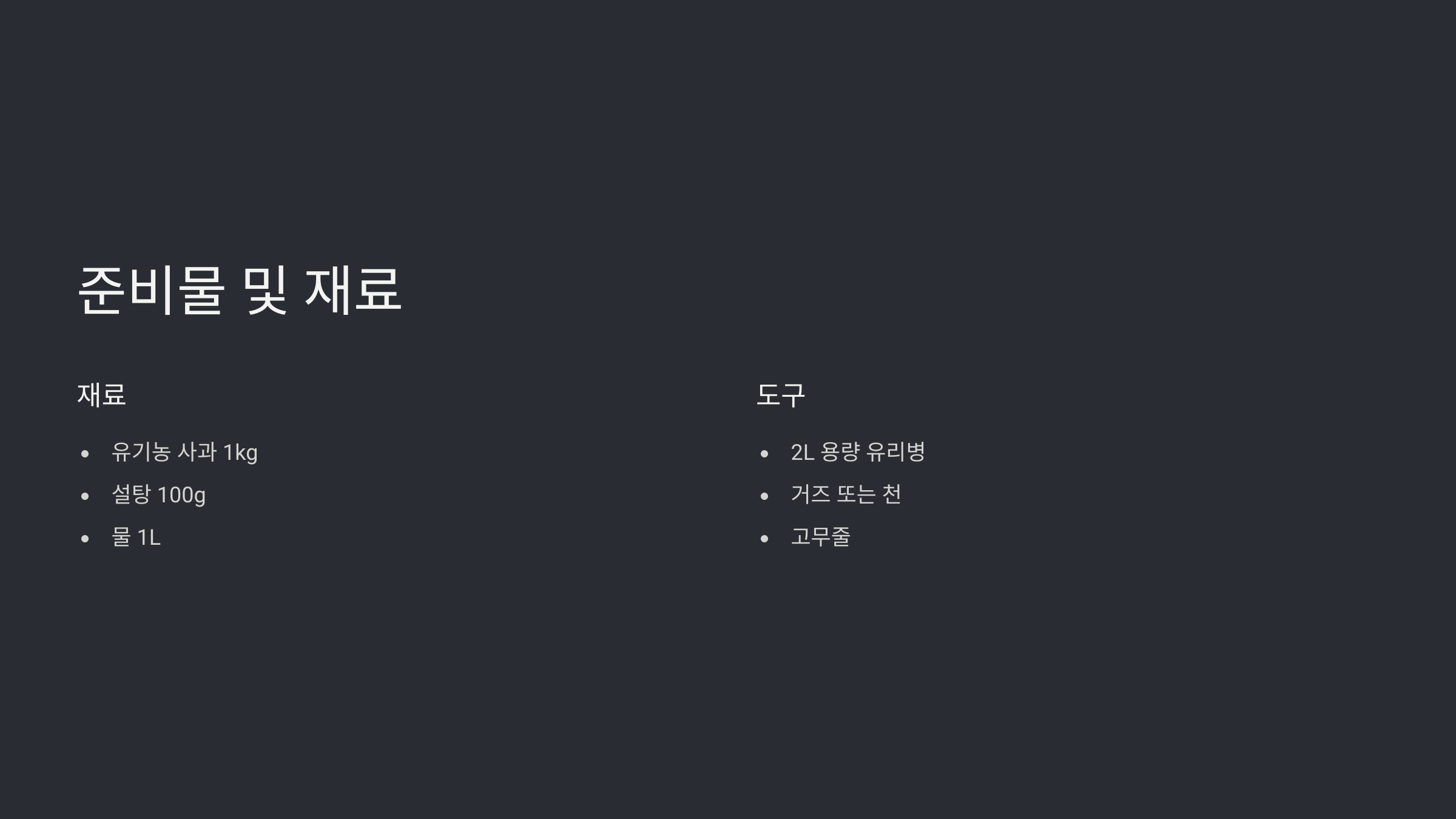 이제 사과초모식초를 만들기 위해 필요한 재료와 도구를 알아볼까요? 🛠️
