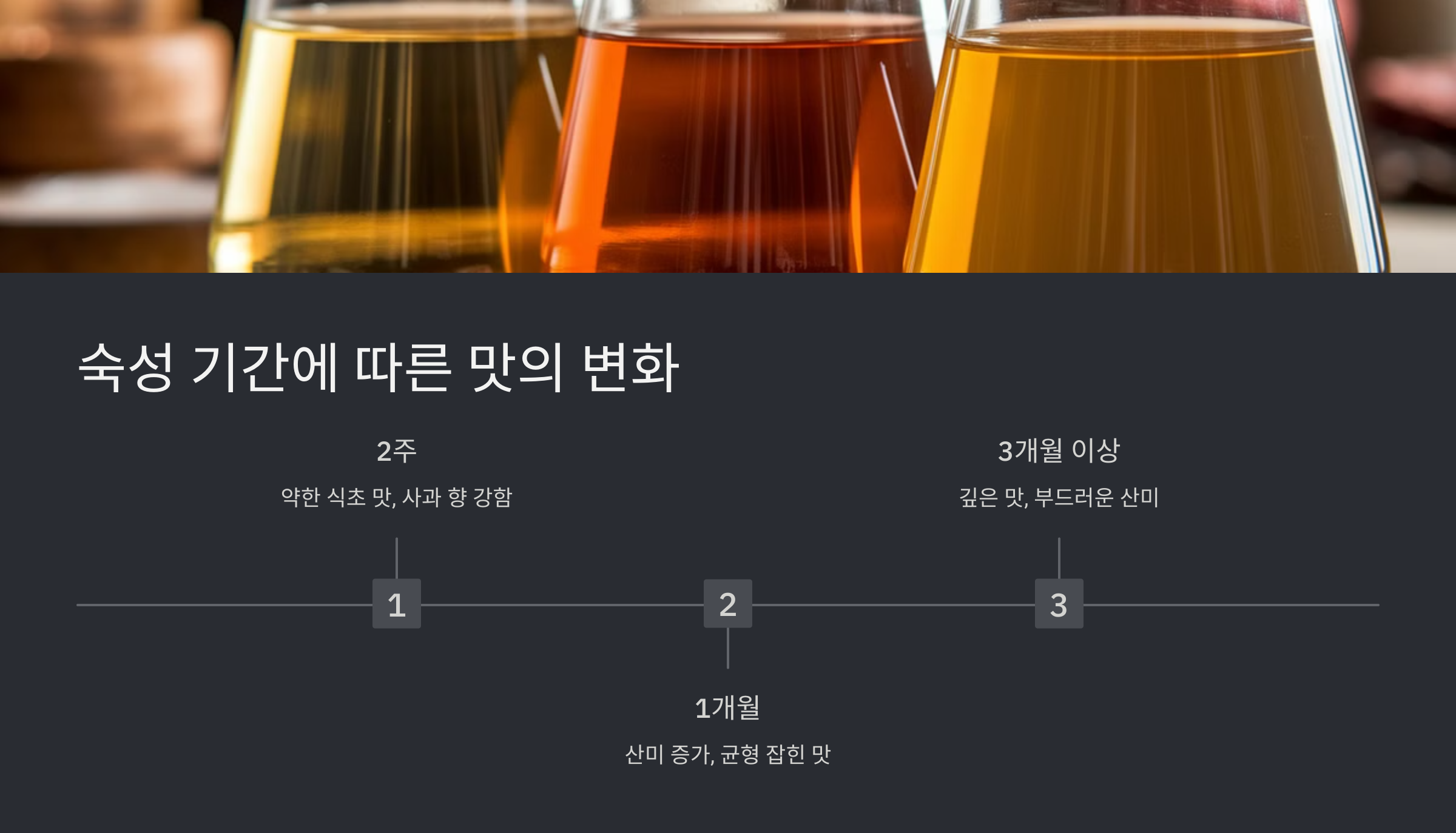 | 4주 | 균형 잡힌 신맛과 깊은 풍미 | 일반 식초 대체, 건강 음료 |