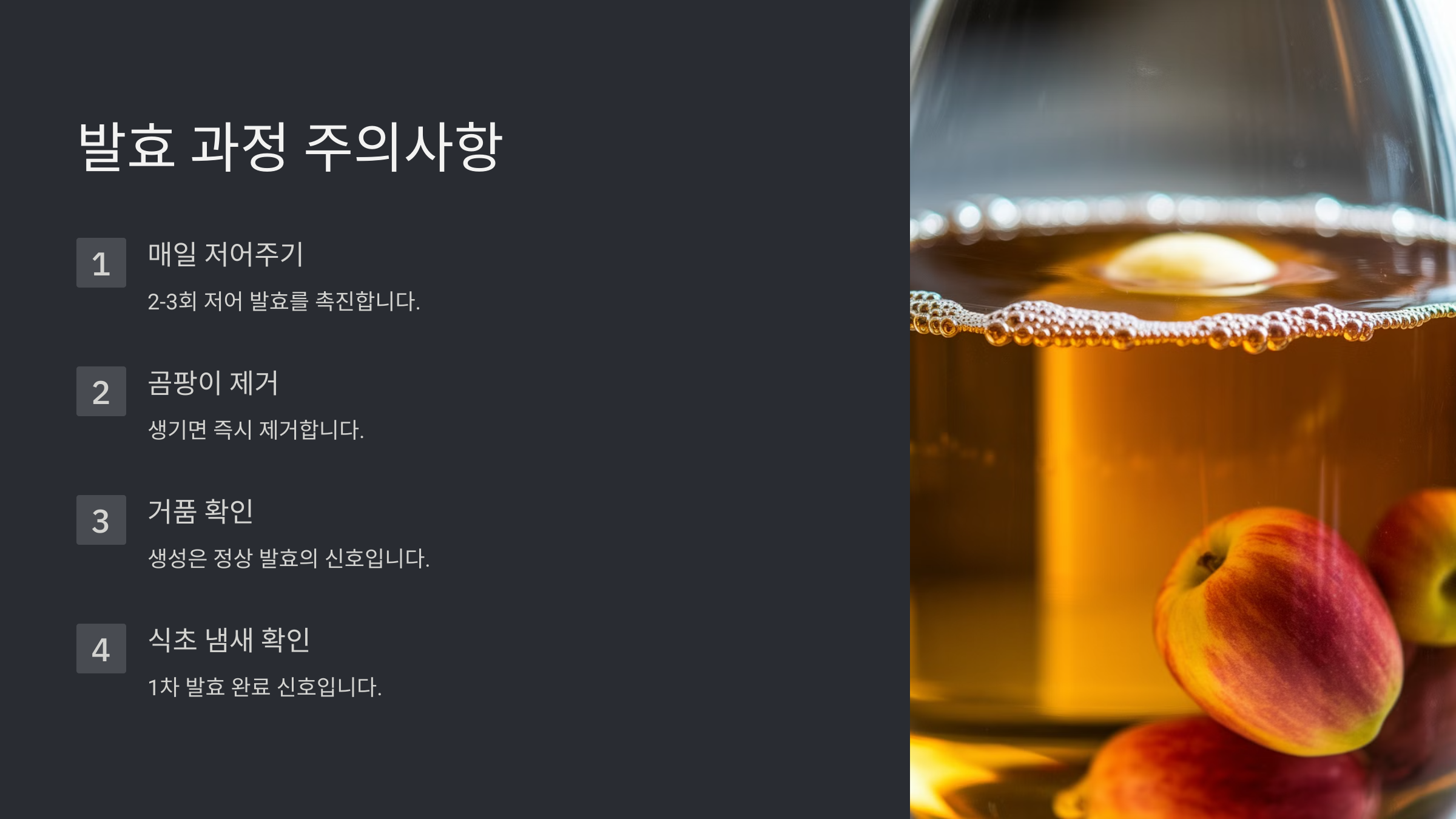 이제 발효 과정에서 어떤 점을 주의해야 하는지도 살펴볼까요? 🧐