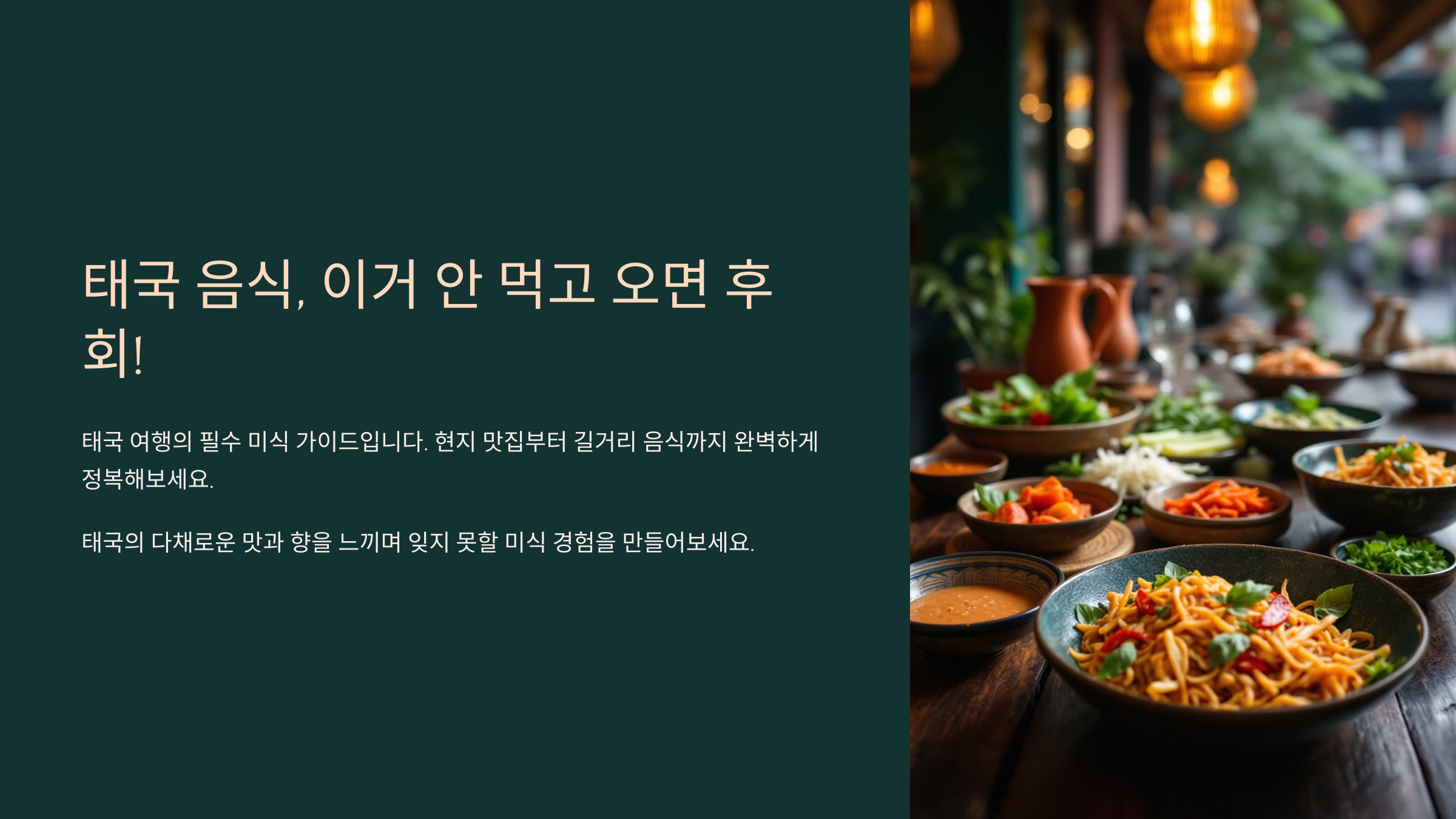태국에는 세계적으로 사랑받는 대표 음식들이 많아요. 팟타이, 쏨땀, 똠얌꿍 등은 물론이고, 우리가 잘 모르는 숨은 맛집들이 무궁무진하죠. 저는 태국 여행을 다녀온 후 태국 음식의 매력에 푹 빠졌어요! 오늘은 태국 여행에서 꼭 먹어야 할 음식과 맛집 찾는 꿀팁을 소개해볼게요. 🍽️