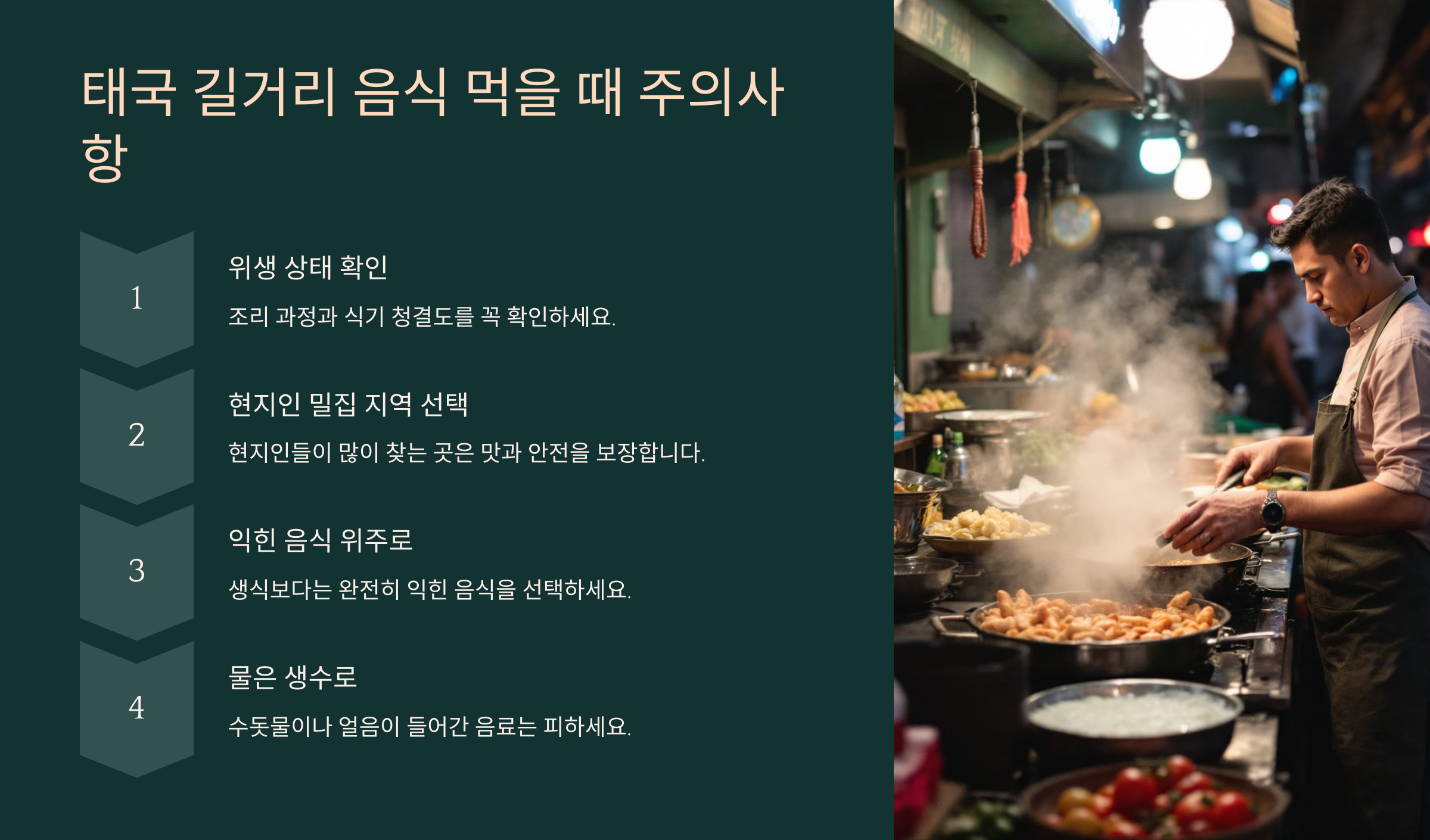 태국 여행의 묘미 중 하나는 다양한 길거리 음식을 맛보는 거예요! 🌮 하지만 길거리 음식은 위생 상태가 다를 수 있어서 주의해야 해요. 안전하게 즐기기 위한 몇 가지 팁을 알려줄게요.