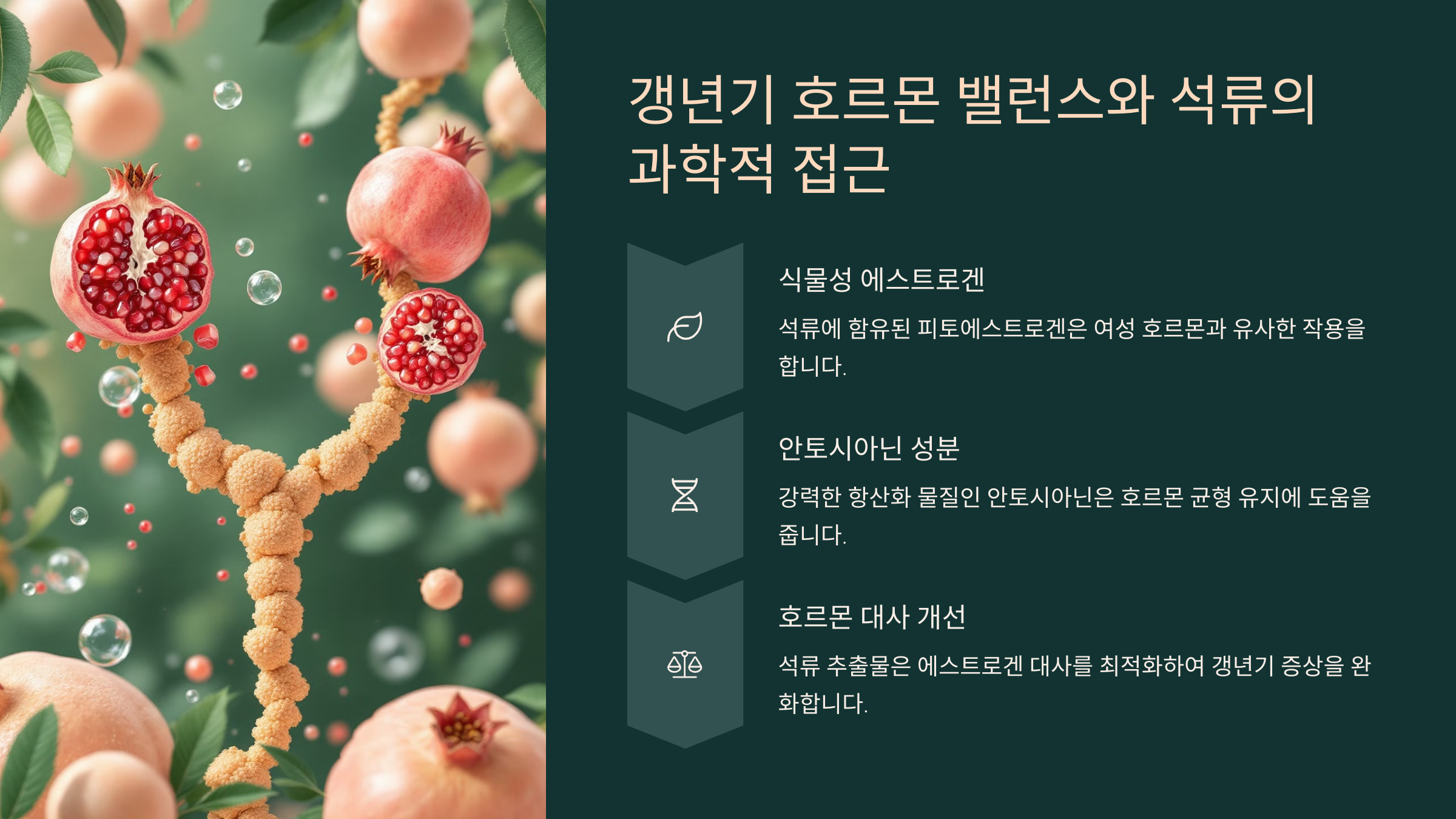 | 에스트로겐 유사 성분 | 호르몬 조절 | 안면홍조, 기분 개선 | 석류 |