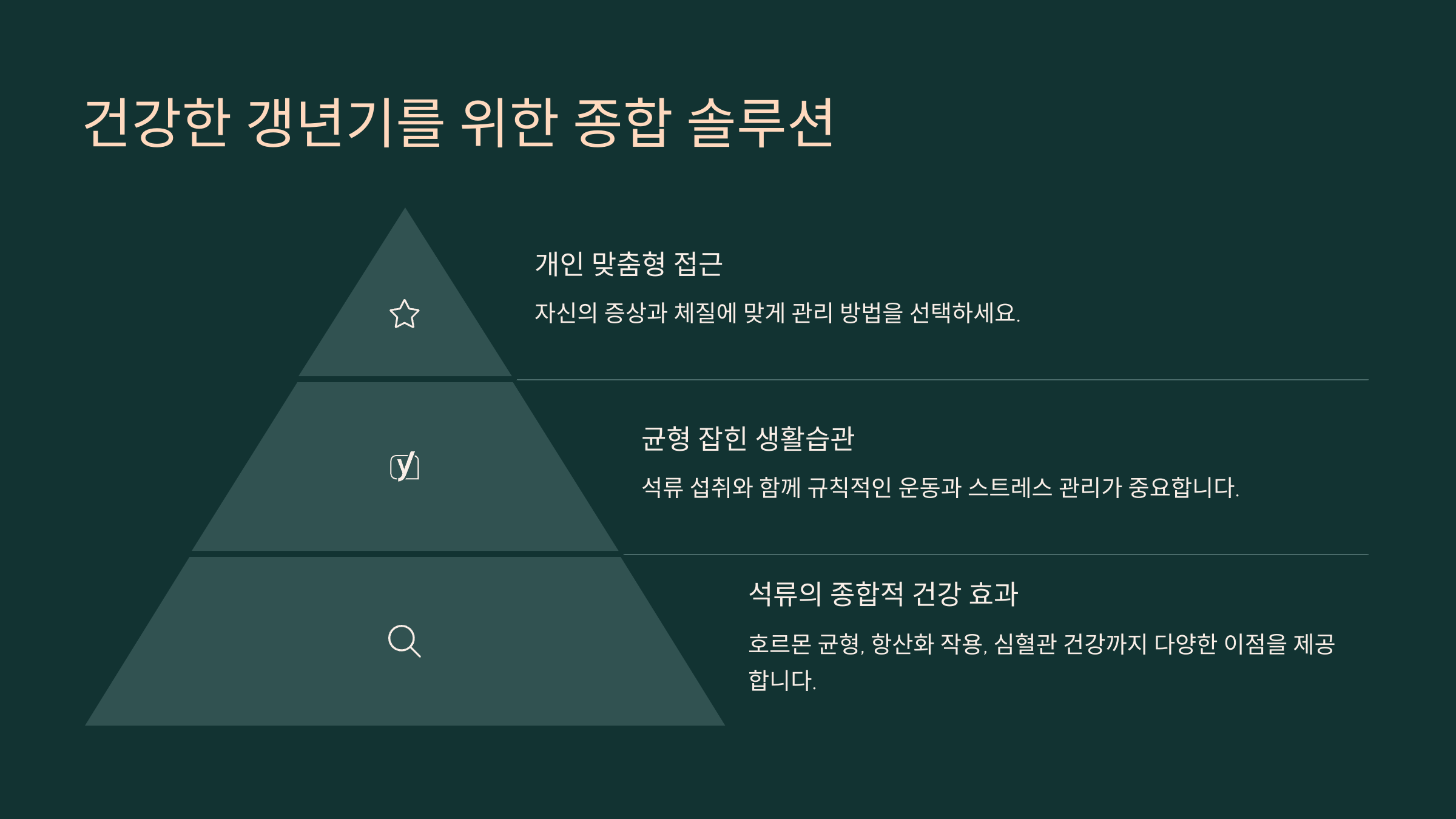 하지만 단순히 석류를 먹는다고 해서 하루아침에 모든 증상이 해결되지는 않아요. 꾸준한 섭취와 함께 건강한 생활 습관이 병행되어야 해요.