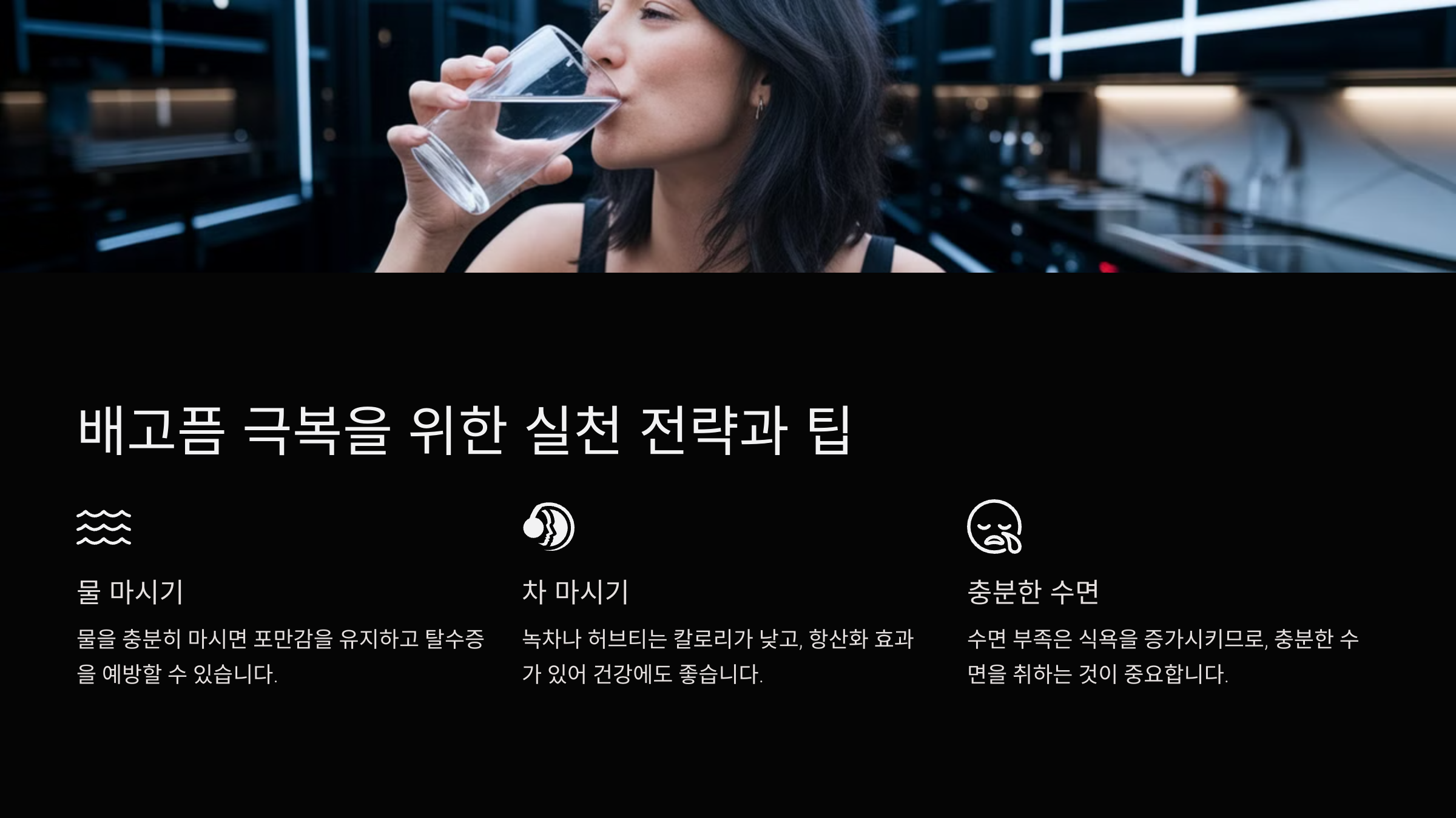 📌 **결론!** 배고픔을 참기 어려울 때는 **물을 마시고, 커피를 마시며, 전해질을 보충하고, 가벼운 운동**을 하면 효과적으로 극복할 수 있어요! 💪