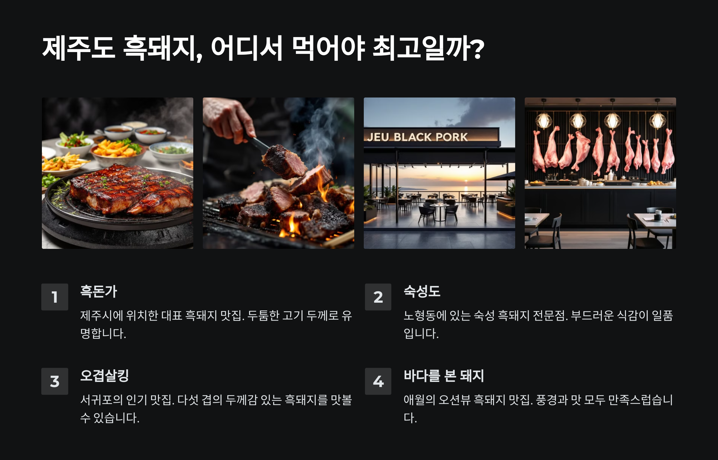 이 맛집들은 현지인들도 추천하는 곳들이라 맛은 보장되어 있어요. 제주에서 흑돼지를 제대로 즐기고 싶다면 꼭 가보세요! 🍖