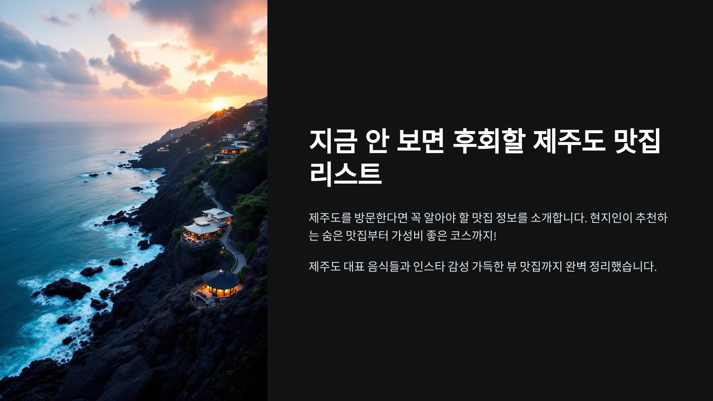 그래서 준비했어요! 현지인들이 추천하는 숨은 맛집부터 가성비 좋은 맛집, 그리고 제주도의 대표 음식인 흑돼지와 한치를 제대로 즐길 수 있는 곳까지. 직접 가본 사람들의 후기를 참고해서 진짜 맛집만 엄선했답니다.