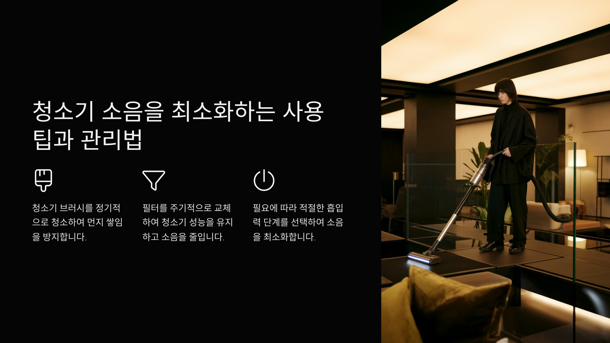 위 팁을 적용하면 청소기 소음을 효과적으로 줄일 수 있어요! 특히 저소음 모드 사용과 필터 관리만 잘해도, 훨씬 더 조용한 청소가 가능하답니다. 🏡✨