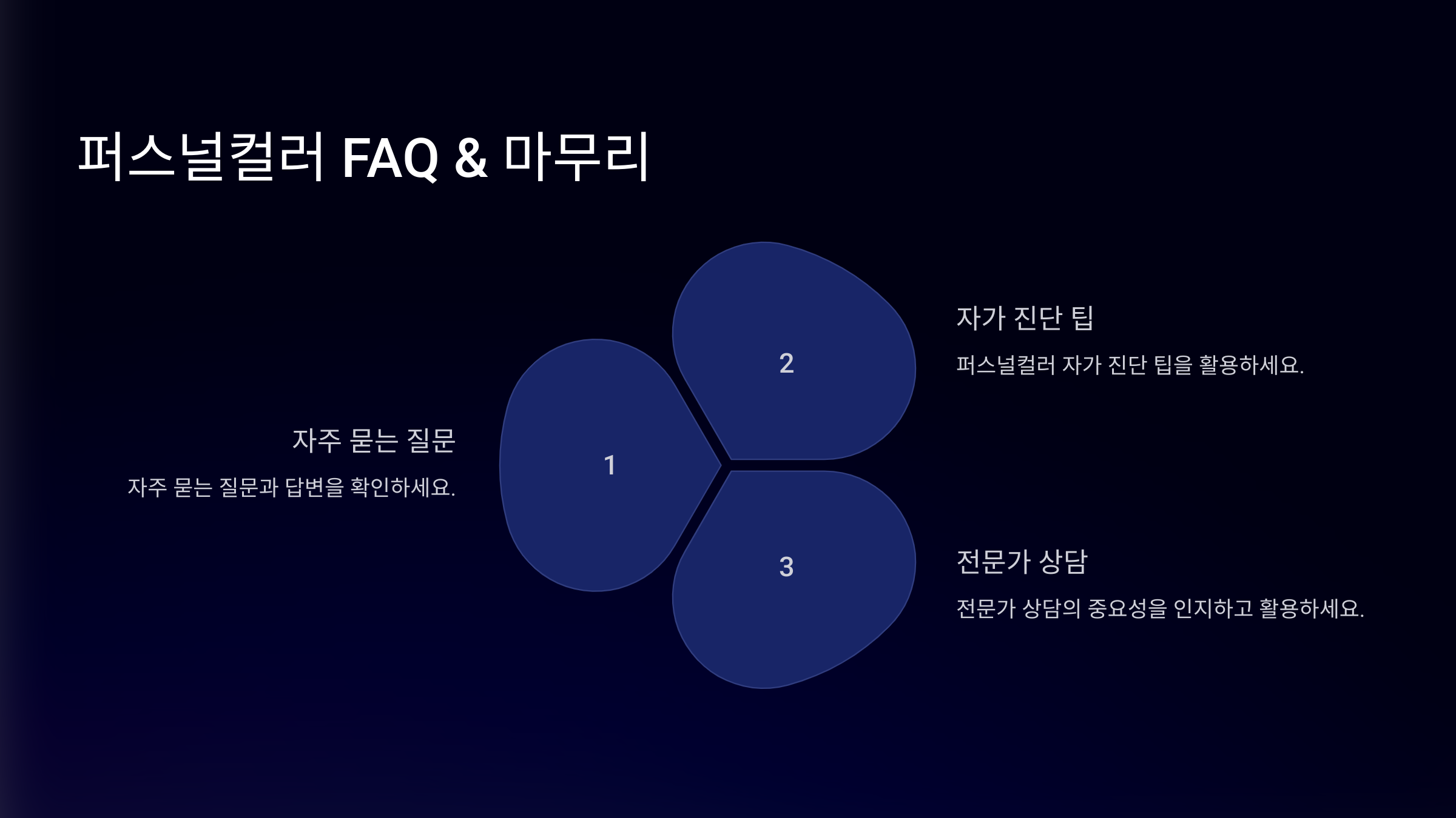 지금까지 퍼스널컬러에 대해 알아봤어요! 이제 FAQ 섹션에서 자주 묻는 질문들을 확인해볼까요? 😊