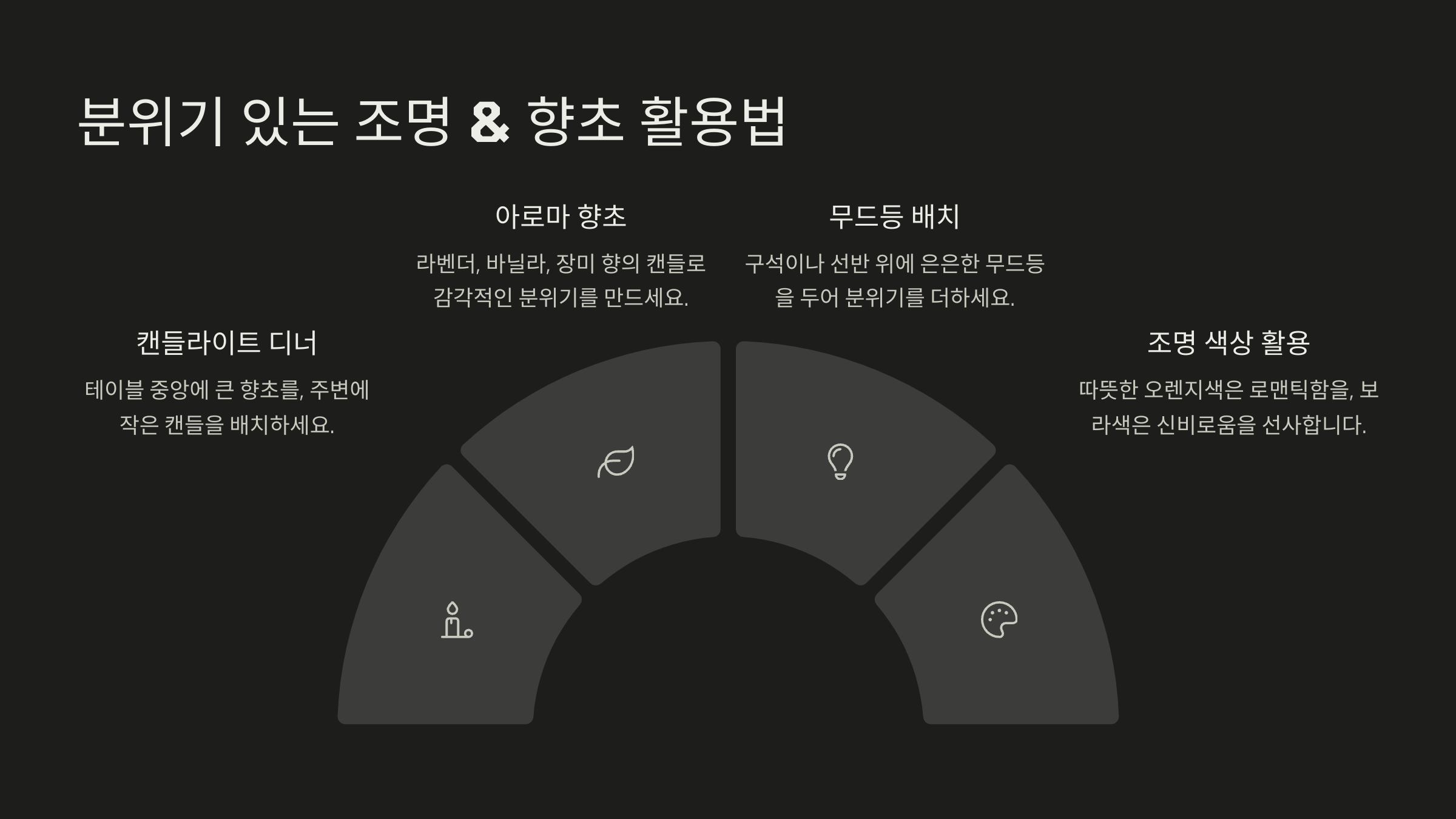 💡 이제 분위기를 더욱 완성시킬 조명 & 향초 활용법을 알아볼까요? 🕯✨