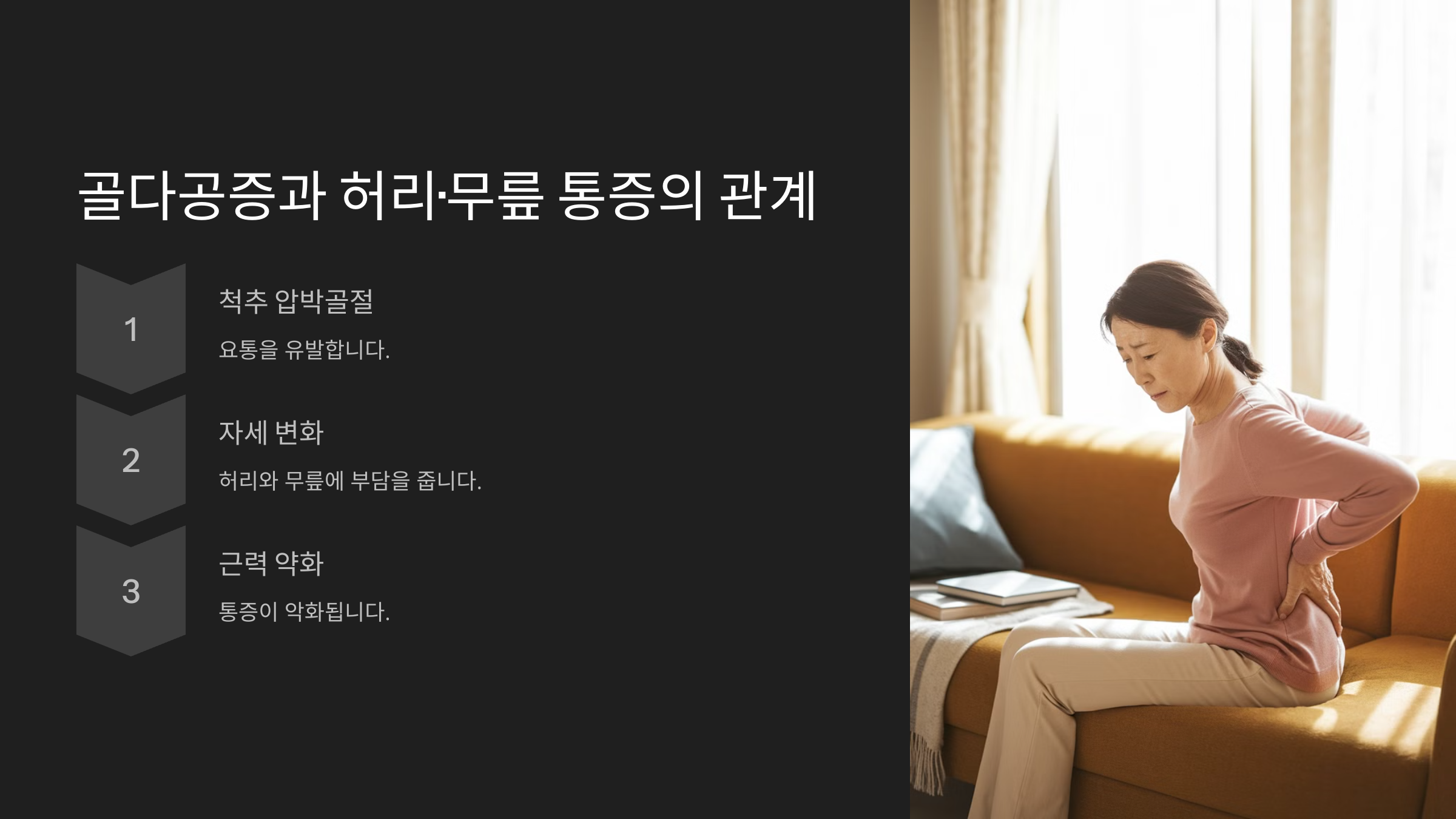 👉 다음으로 골다공증과 허리·무릎 통증의 관계를 알아볼까요?