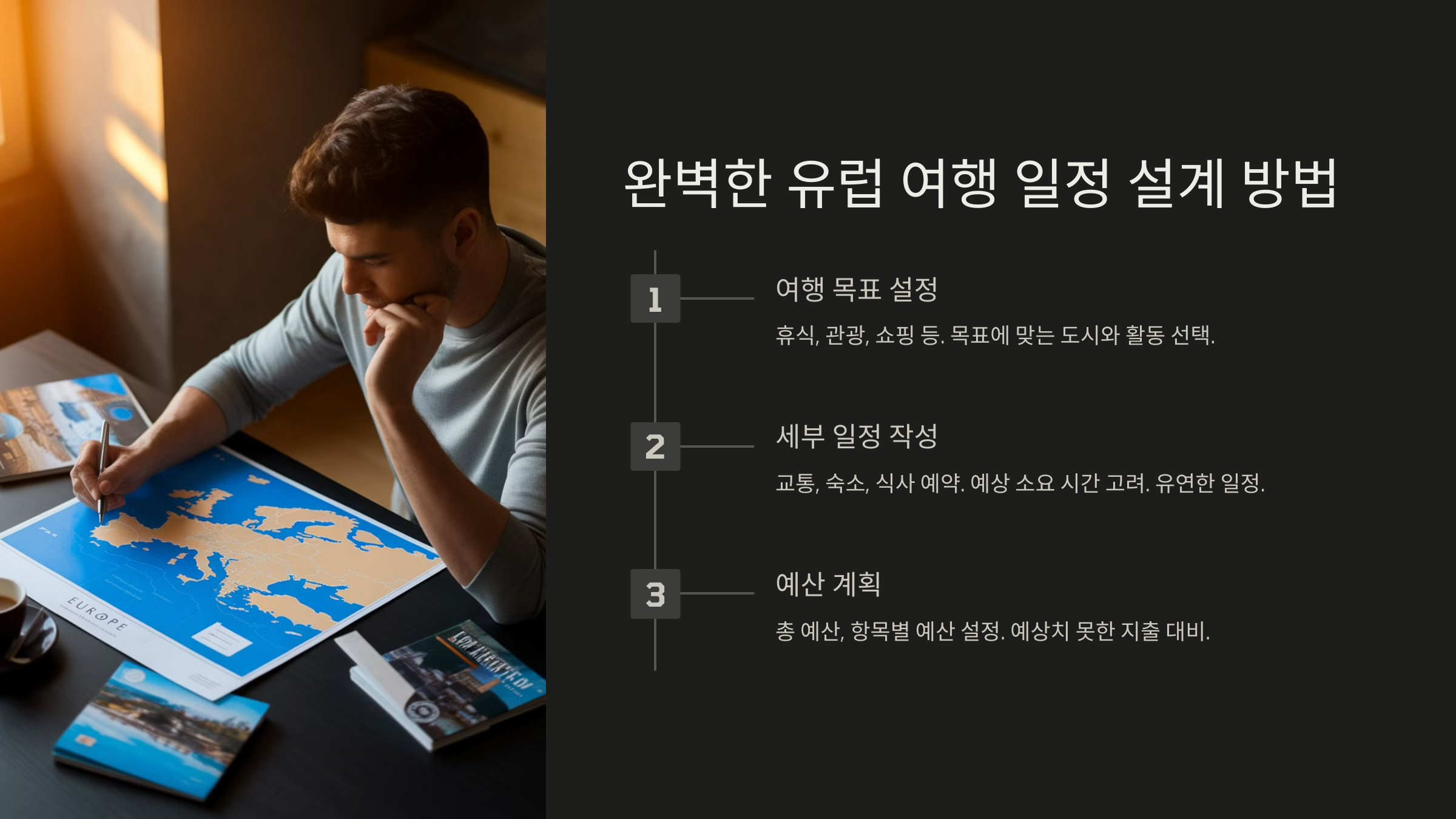 유럽 자유여행을 성공적으로 즐기려면 **꼼꼼한 일정 계획**이 필수예요! 하지만 여행 초보라면 어디서부터 시작해야 할지 막막할 수 있죠. 여기서 쉽게 따라 할 수 있는 유럽 자유여행 일정 짜는 방법을 알려드릴게요. 🗺️