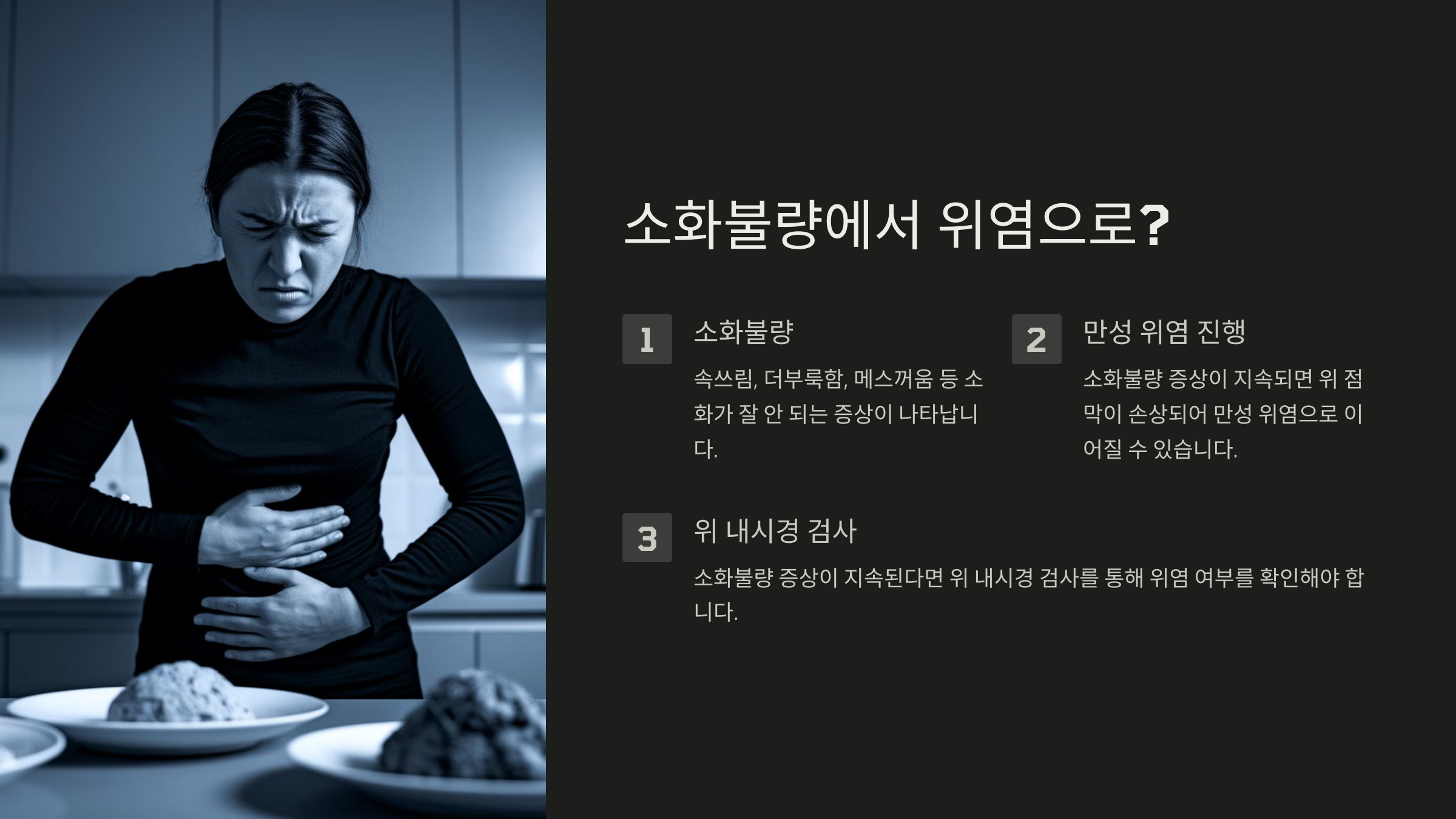 만성 위염은 위 점막이 지속적으로 손상되면서 위벽이 얇아지고 기능이 저하되는 상태를 의미해요. 초기에 적절한 치료와 생활 습관 개선이 중요하지만, 이를 무시하면 위암으로 이어질 수도 있어요.