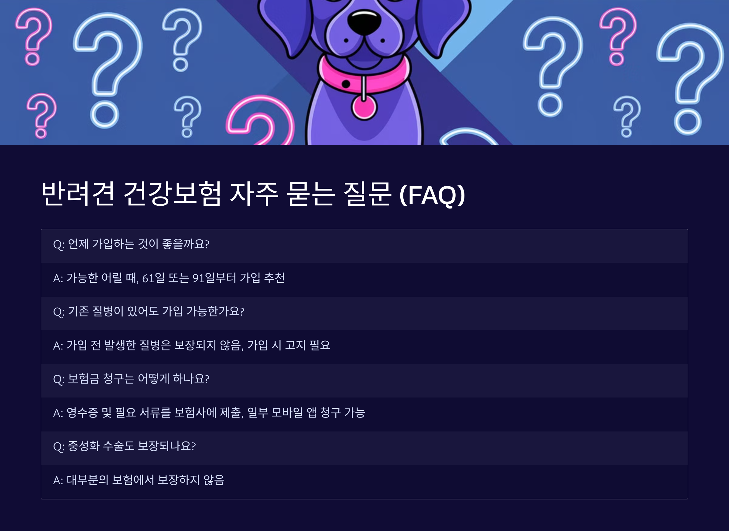이제 마지막으로, 반려견 건강보험에 대해 자주 묻는 질문들을 정리해볼게요! 🧐