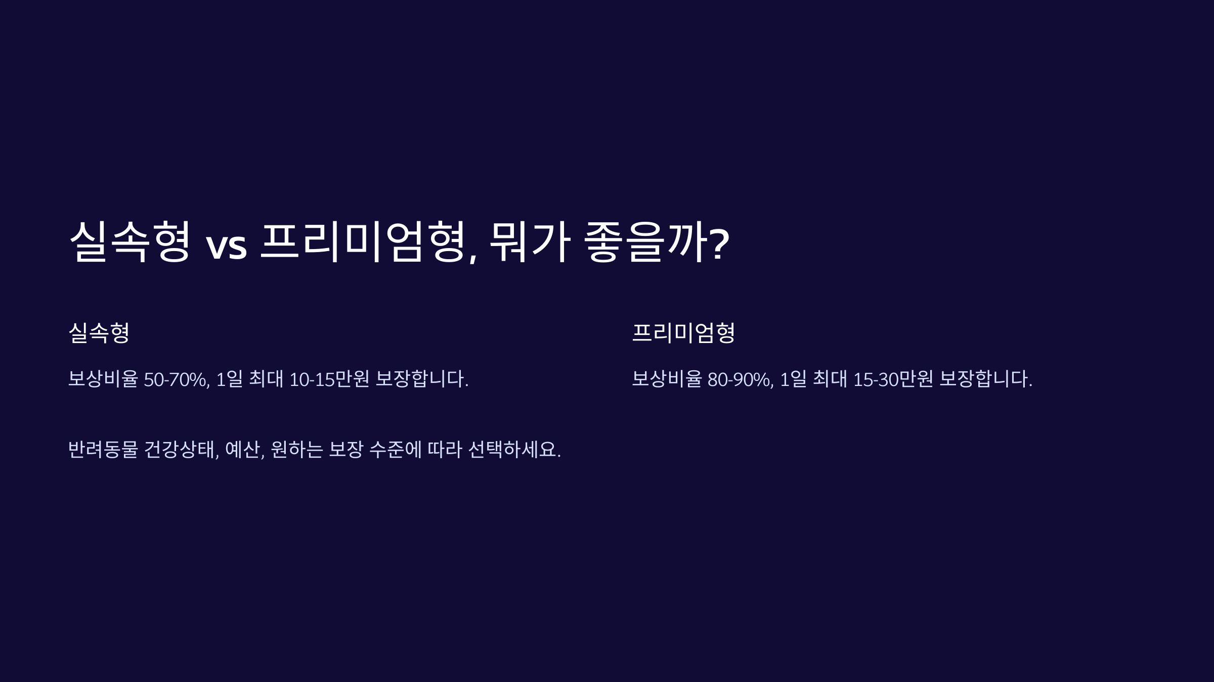 반려견 건강보험은 크게 '실속형'과 '프리미엄형'으로 나뉘어요. 🧐 어떤 보험이 우리 강아지에게 적합할까요?